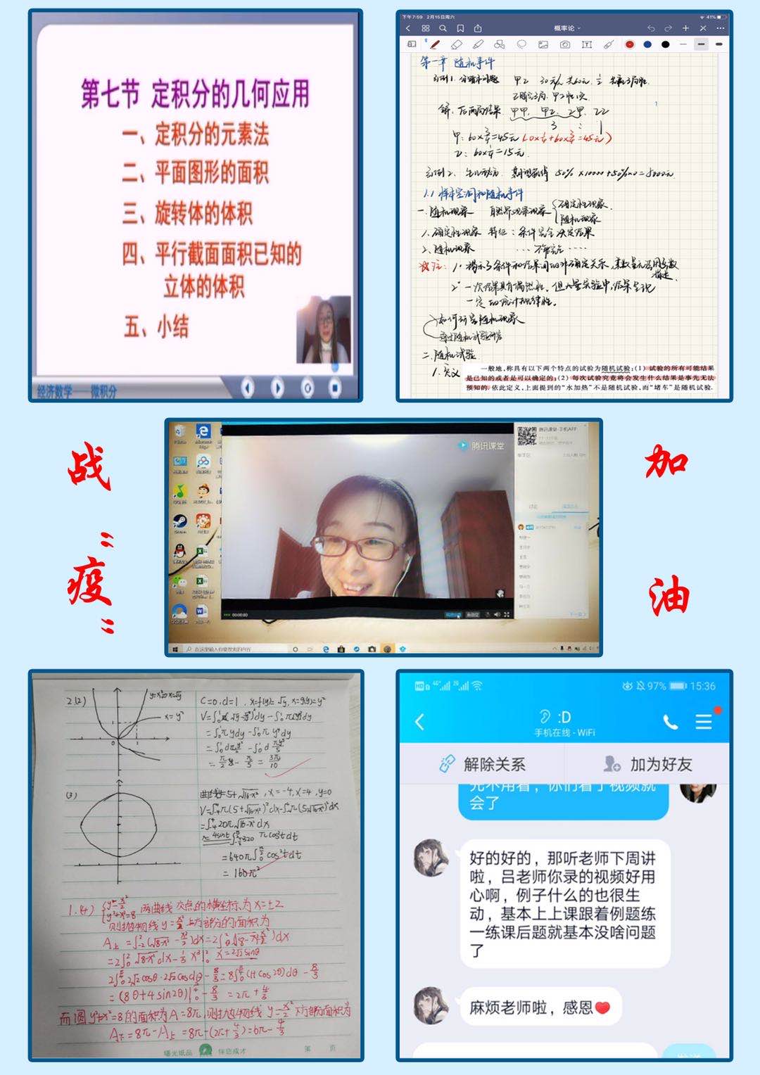 呂濯纓本學(xué)期承擔(dān)會計學(xué)專業(yè)2019級兩個班的《高等數(shù)學(xué)》課程與金融學(xué)專業(yè)2018級四個班的《概率論》課程教學(xué)任務(wù)。雖然有壓力,但為了能夠迅速適應(yīng)線上教學(xué)的要求,呂濯纓接到學(xué)校通知后立即開始著手準備,快速學(xué)習(xí)線上教學(xué)所需各種軟件,充分預(yù)估線上教學(xué)突發(fā)狀況及準備相應(yīng)解決辦法,由于承擔(dān)的兩門課程選用的教材版本適用范圍明確、專業(yè)性突出,呂濯纓沒有找到與她的教學(xué)計劃匹配度較高的教學(xué)資源,于是最終決定用錄播和直播相結(jié)合的方式開展教學(xué)。