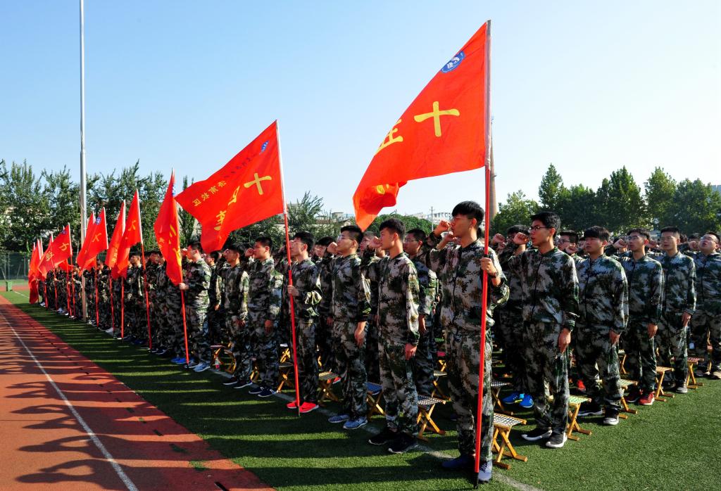 典禮上,校區(qū)黨委常務(wù)副書記高永軍宣讀了關(guān)于對2018級新生進行軍訓(xùn)的決定和軍訓(xùn)團領(lǐng)導(dǎo)成員名單,軍訓(xùn)教官高明坤、教師代表劉寶春、新生代表陳著分別發(fā)言,新生代表劉江鵬帶領(lǐng)全體2018級新生面向國旗莊嚴(yán)宣誓。