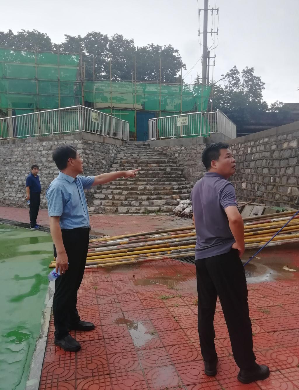 8月13日下午,副校長兼濟(jì)南校區(qū)黨工委書記、管委主任孫鶴汀到暑期維修改造工程施工現(xiàn)場,實(shí)地查看工程進(jìn)展情況,對校園防汛工作進(jìn)行檢查指導(dǎo)。校區(qū)黨工委副書記賈長響及有關(guān)部門負(fù)責(zé)人陪同。
