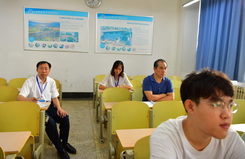 在教學(xué)主樓,賈長(zhǎng)響、鄒積強(qiáng)、樊銘渠分別深入計(jì)算機(jī)科學(xué)與技術(shù)2019級(jí)3班《大學(xué)英語》與計(jì)算機(jī)科學(xué)與技術(shù)2018級(jí)1、2班《軟件工程》等課堂中,認(rèn)真聽取課堂授課,仔細(xì)查看了解教學(xué)秩序,詳細(xì)記錄聽課情況。課間與授課教師、學(xué)生親切交流,了解教學(xué)情況,聽取對(duì)校區(qū)教學(xué)工作的意見和建議,鼓勵(lì)教師積極探索教學(xué)改革新模式,不斷提高教書育人水平,叮囑學(xué)生嚴(yán)格遵守校區(qū)各項(xiàng)防控工作要求,保障個(gè)人安全健康,勉勵(lì)他們珍惜寶貴的在校學(xué)習(xí)機(jī)會(huì),積極調(diào)整好自身狀態(tài),全力以赴投入到新學(xué)期的學(xué)習(xí)生活中。