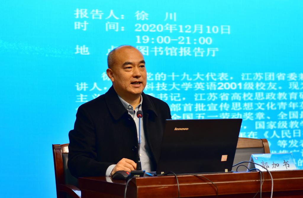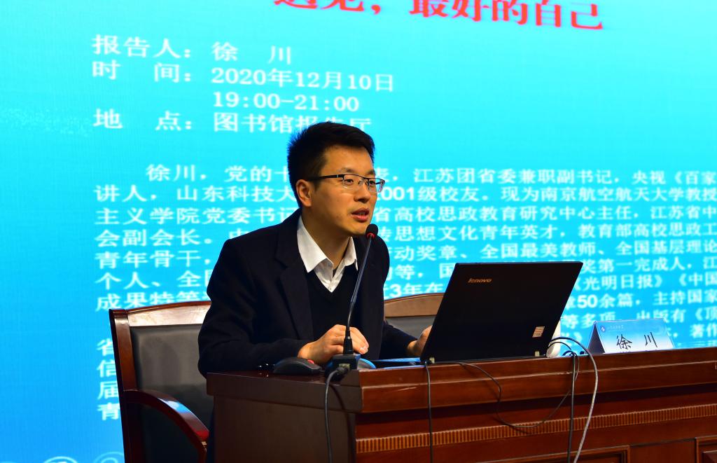 12月10日晚7:00,濟南校區(qū)在圖書館報告廳舉辦優(yōu)秀校友報告會。黨的十九大代表、共青團江蘇省委兼職副書記、南京航空航天大學馬克思主義學院黨委書記、我校2001級英語專業(yè)校友徐川教授作了題為“遇見,最好的自己”的精彩報告。校區(qū)管委副主任兼學團工作部主任郭加書主持會議,全體學生工作干部與400余名青年學生共同聆聽了報告。