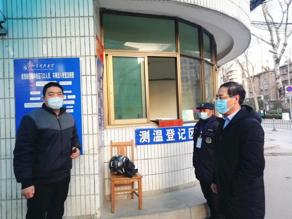 1月16日下午,副校長兼濟南校區(qū)黨工委書記、管委主任孫鶴汀到濟南校區(qū)“海外學習中心”、學生宿舍樓維修改造施工現(xiàn)場等處,檢查指導施工情況,并到校區(qū)門口檢查指導疫情防控工作,提出工作要求。