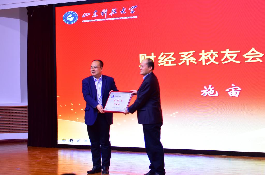 與會領導分別向財經系校友會會長授牌,向副會長代表、秘書長、副秘書長代表及理事代表頒發(fā)聘書,為校友代表頒發(fā)捐贈紀念牌。