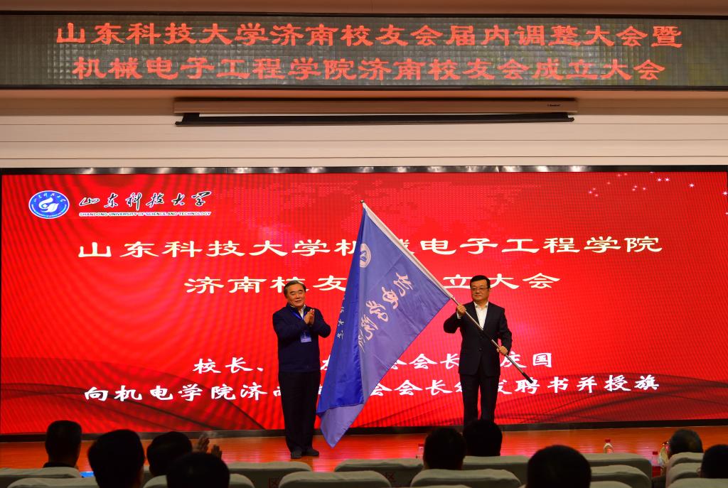 在機械電子工程學院濟南校友會成立大會上,與會人員一致審議通過了《山東科技大學機械電子工程學院濟南校友會章程》、校友會顧問名單及會長、副會長、秘書長、副秘書長成員名單,姚慶國向機械電子工程學院校友會新當選會長授旗,與會領導分別向校友會顧問、副會長、秘書長、副秘書長、理事代表頒發(fā)聘書。