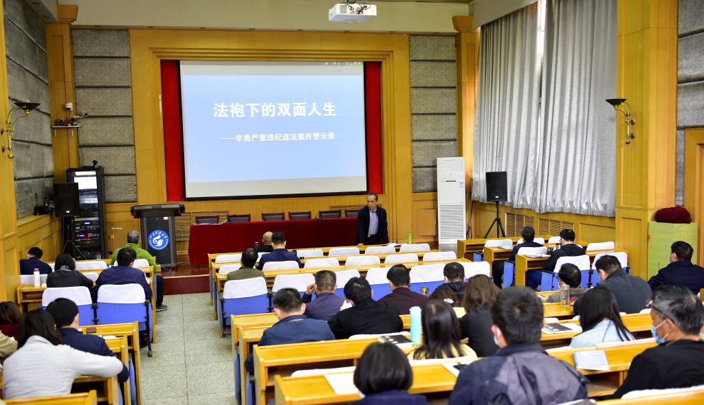 為進(jìn)一步加強(qiáng)黨風(fēng)廉政建設(shè),強(qiáng)化干部黨紀(jì)黨規(guī)意識(shí),切實(shí)增強(qiáng)拒腐防變能力,4月27日,濟(jì)南校區(qū)組織科級(jí)以上干部、學(xué)生工作干部集中觀看廉政警示教育片《迷失初心必自毀》《法袍下的雙面人生》《檢徽下的交易》。