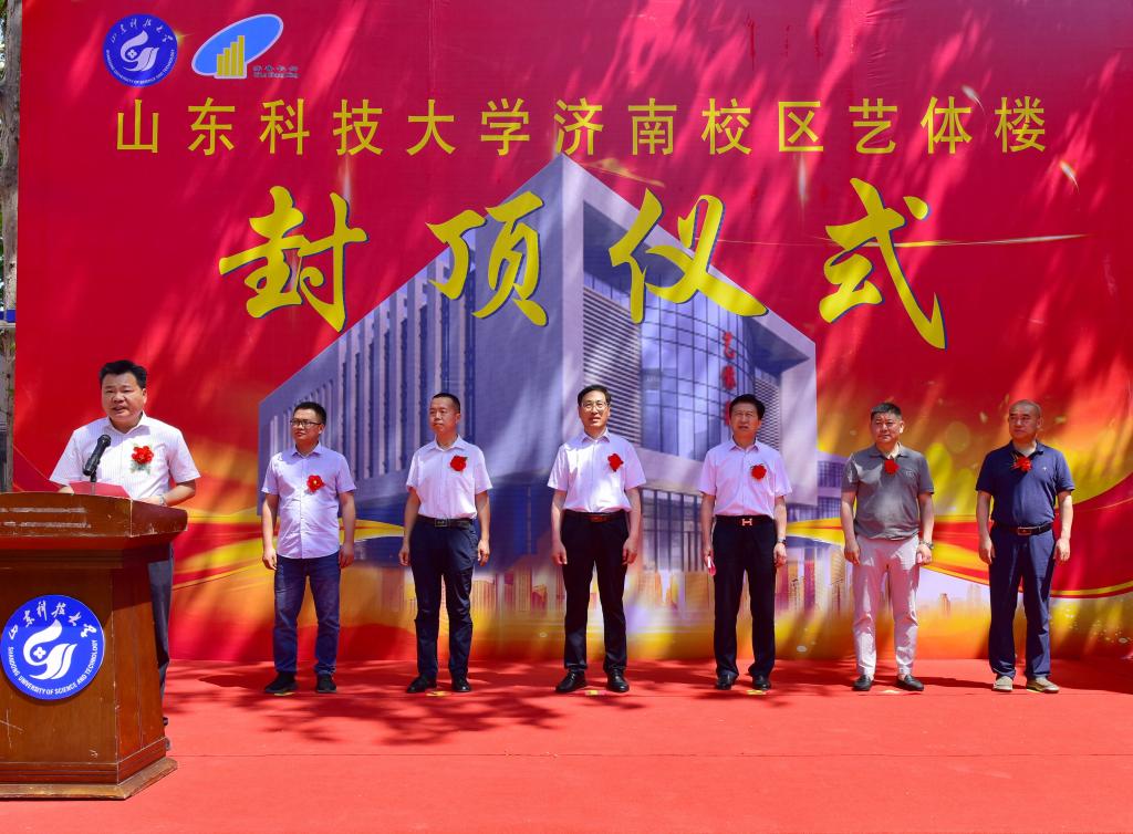 6月6日上午,濟(jì)南校區(qū)隆重舉行藝體樓主體結(jié)構(gòu)封頂儀式。副校長(zhǎng)兼濟(jì)南校區(qū)黨工委書記、管委主任孫鶴汀,濟(jì)南長(zhǎng)興建設(shè)集團(tuán)有限公司總裁董春普,山東晨旭建設(shè)項(xiàng)目管理咨詢有限公司總經(jīng)理吳軍,戴文工程設(shè)計(jì)(上海)有限公司副經(jīng)理王樹濤,山東新聯(lián)誼工程咨詢有限公司副總經(jīng)理路勇,校區(qū)管委副主任兼學(xué)團(tuán)工作部主任郭加書,各部門、各單位主要負(fù)責(zé)人,離退休老同志代表,學(xué)生代表,藝體樓建設(shè)專班和各參建單位工作人員參加儀式。儀式由校區(qū)黨工委副書記賈長(zhǎng)響主持。