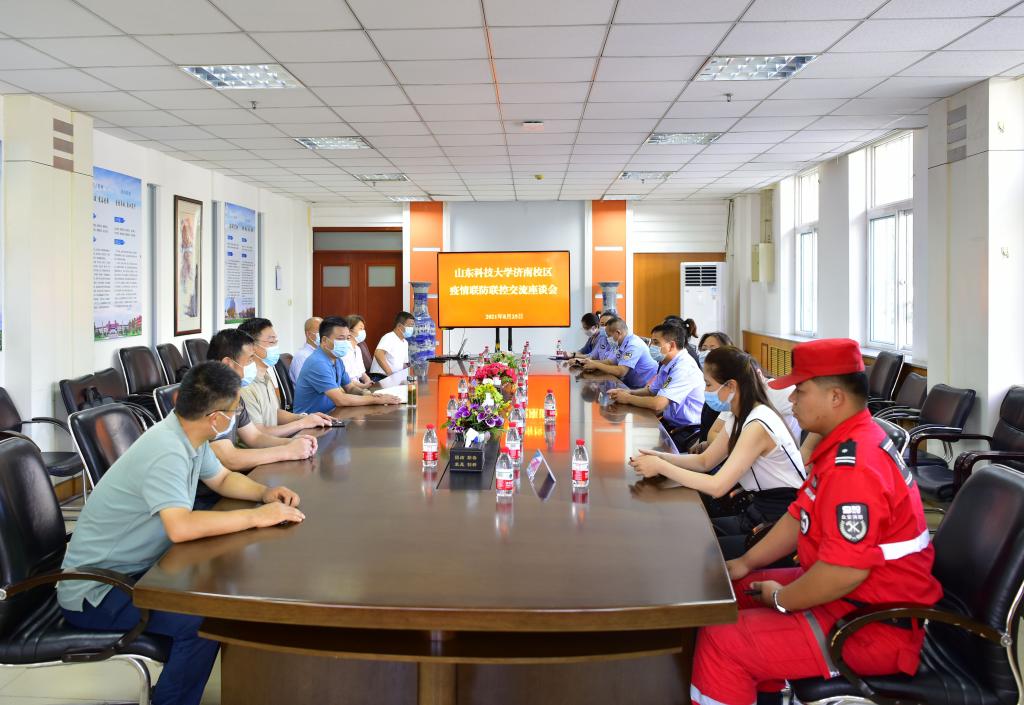 為進一步強化疫情聯(lián)防聯(lián)控工作機制,8月25日下午,濟南校區(qū)召開疫情聯(lián)防聯(lián)控工作交流座談會,與聯(lián)防聯(lián)控部門單位就全面做好校區(qū)秋冬季新冠肺炎疫情防控工作進行座談交流。濟南校區(qū)黨委副書記賈長響主持座談會,省立三院、天橋區(qū)疾控中心、堤口路街道辦事處、堤口路派出所、社區(qū)聯(lián)合黨委、礦院路居民委員會等單位相關(guān)負責人參加了座談。