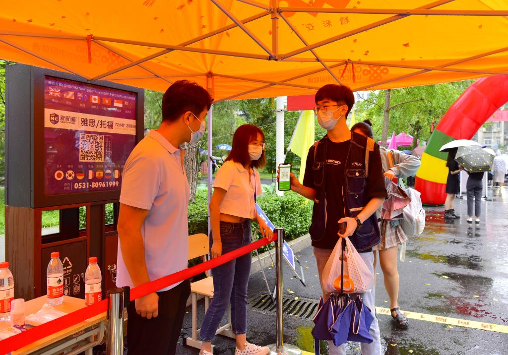 新生經(jīng)過入校核驗通道進行亮碼測溫