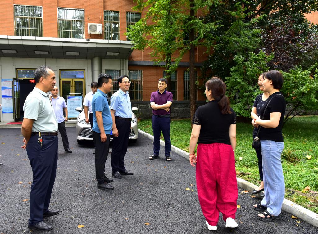 孫鶴汀一行還到校區(qū)大門口、操場、教學樓施工現(xiàn)場等處檢查工作。