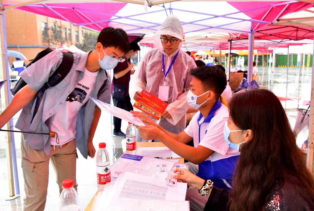 志愿者為新生辦理報到手續(xù)