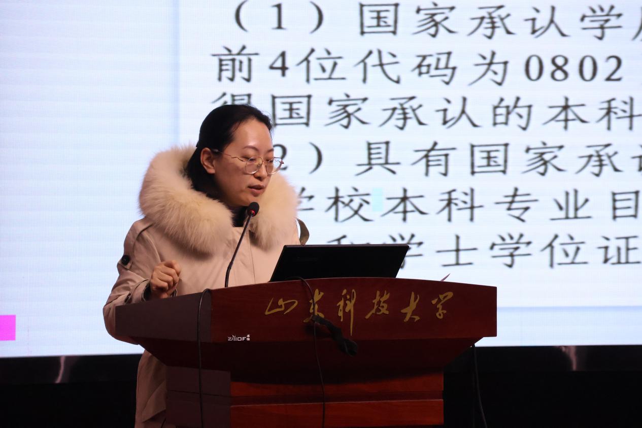 會上,學(xué)生輔導(dǎo)員用詳細(xì)的數(shù)據(jù)、精準(zhǔn)的報表和典型事例,客觀分析了所負(fù)責(zé)學(xué)生的班級特點、學(xué)習(xí)成績、學(xué)風(fēng)狀況、就業(yè)前景等情況??蒲胁奎S瑤介紹了校區(qū)2025年研究生招生計劃及報考條件。