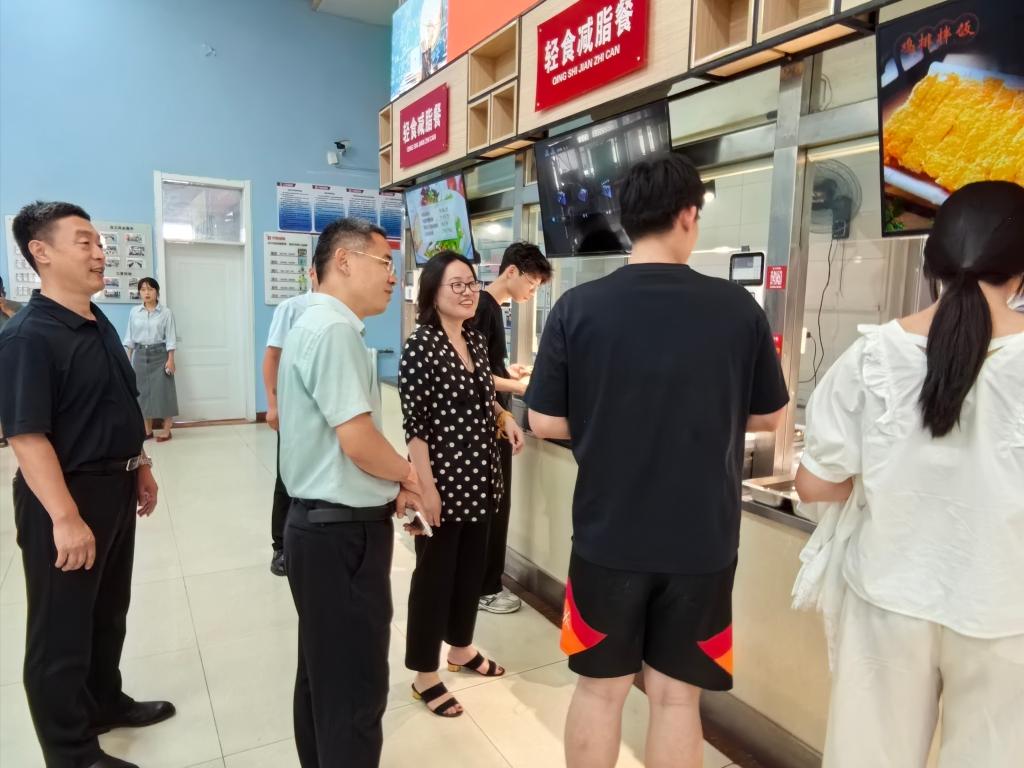 6月10日中午,校黨委常委、副校長(zhǎng)兼濟(jì)南校區(qū)黨委書記、管委主任董海榮到校區(qū)餐廳調(diào)研指導(dǎo)工作。校區(qū)管委副主任兼黨政辦公室主任孫國(guó)強(qiáng)、后勤管理部負(fù)責(zé)人等陪同調(diào)研。