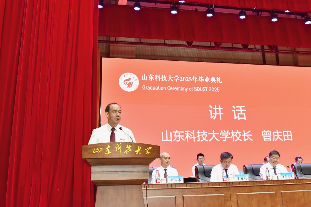 曾慶田以“啟航2025,共赴十年之約”為題,為畢業(yè)生上了大學(xué)“最后一課”。他代表學(xué)校向圓滿完成學(xué)業(yè)的2025屆全體本科畢業(yè)生,致以熱烈的祝賀和美好的祝福,向陪伴畢業(yè)生成長(zhǎng)成才的老師、父母和親友表示崇高的敬意和衷心的感謝,向前來觀禮的各位校友表示誠摯的歡迎和親切的問候。他深情回顧了同學(xué)們在山科四年的成長(zhǎng)歷程和美好記憶。他指出,大學(xué)四年,同學(xué)們與學(xué)校風(fēng)雨同舟、勠力同心,從2021到2025的成長(zhǎng)軌跡,將永遠(yuǎn)記錄在母校的“日志”上。希望同學(xué)們以當(dāng)下為起點(diǎn),眺望今后十年,將個(gè)人夢(mèng)想與國家基本實(shí)現(xiàn)社會(huì)主義現(xiàn)代化的宏偉藍(lán)圖同頻共振,與學(xué)校建設(shè)世界高水平應(yīng)用研究型大學(xué)的奮斗目標(biāo)緊密交織,共同譜寫強(qiáng)國建設(shè)、強(qiáng)??缭降蔫财?。