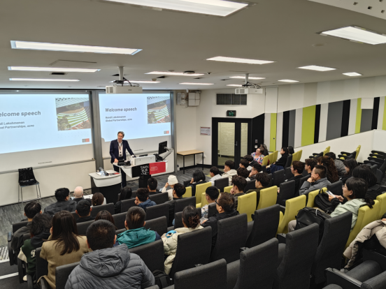 歡迎會(huì)上,斯威本科技大學(xué)全球事務(wù)副校長(zhǎng) Douglas Proctor 博士致開幕辭,對(duì)遠(yuǎn)道而來的師生表示誠(chéng)摯歡迎,希望同學(xué)們以新的學(xué)習(xí)之旅加深兩校合作與友誼。AEMG 全球合作總監(jiān) Nandi Lakshmanan 先生表示將持續(xù)為師生提供優(yōu)質(zhì)支持與服務(wù),為兩校高質(zhì)量合作奠定良好基礎(chǔ)。