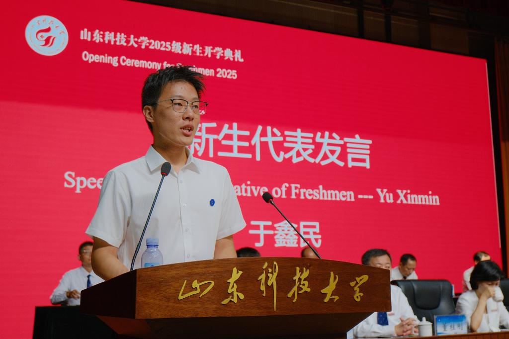 新生代表于鑫民表示大學(xué)是知識的殿堂,更是青春的戰(zhàn)場,將秉承“惟真求新”的校訓(xùn)和“團結(jié)、勤奮、求是、創(chuàng)新”的校風(fēng),以感恩為魂、以奮斗為刃、以責(zé)任為盾、以夢想為航,在新時代的洪流中勇立潮頭,用熱血與汗水書寫 “請黨放心,強國有我”的青春答卷。