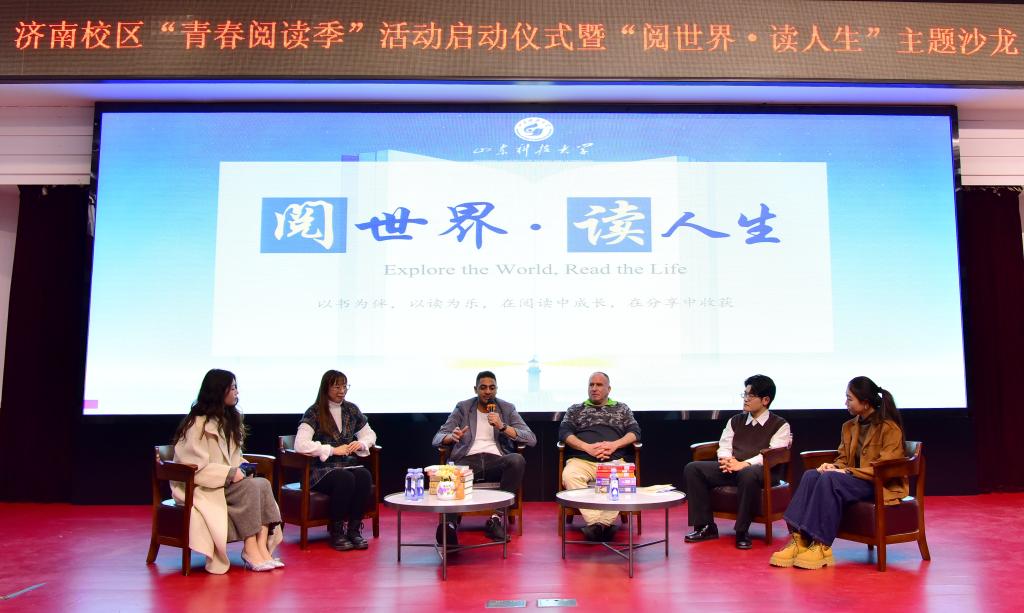 主題沙龍環(huán)節(jié),外籍教師Bruce、Hassan,中方教師呂濯纓作為分享嘉賓,圍繞“閱讀與國(guó)際視野開闊”“我的閱讀經(jīng)歷與經(jīng)驗(yàn)”“閱讀的受益與收獲”進(jìn)行精彩分享,他們從跨學(xué)科、跨國(guó)界視角分享閱讀感悟、推薦優(yōu)質(zhì)書籍,探討閱讀與人生感悟。學(xué)生代表劉圣廣和高藝珊分別以“青春閱讀與獨(dú)立思考”“以閱讀點(diǎn)亮青春”為主題分享閱讀之于青春成長(zhǎng)的意義。