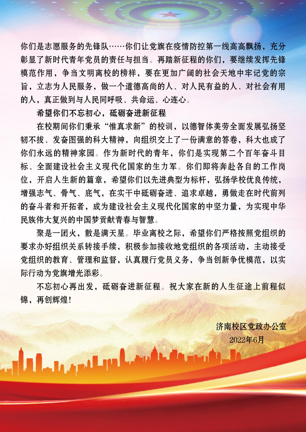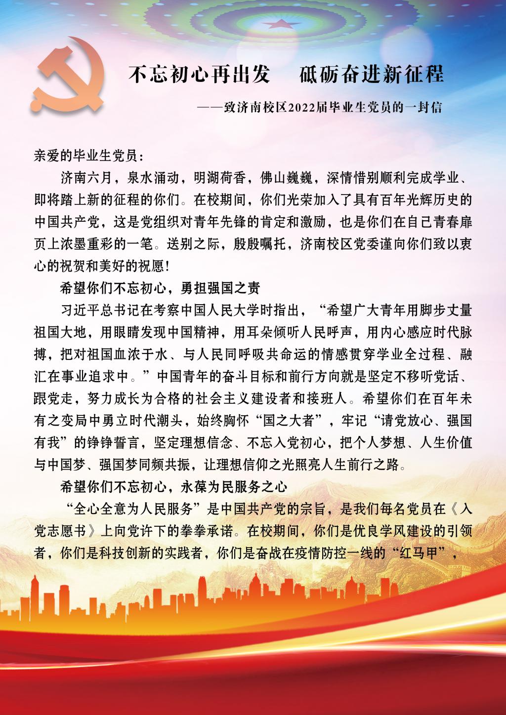 不忘初心再出發(fā) 砥礪奮進新征程 ——致濟南校區(qū)2022屆畢業(yè)生黨員的一封信