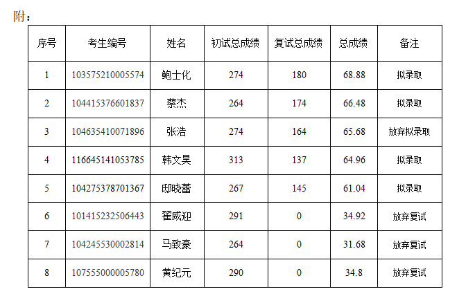 我院按照學(xué)校下達(dá)招生計(jì)劃進(jìn)行擬錄取,若后期學(xué)校追加計(jì)劃或公示名單中擬錄取考生自愿放棄,將按照總成績(jī)從高到低順次進(jìn)行待錄取,并另行公示。最終擬錄取名單由學(xué)校研究生院進(jìn)行統(tǒng)一公示。