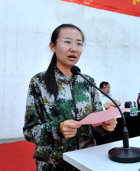 儀式上,軍訓教官代表李丹、學生代表劉子怡先后發(fā)言,談了自己軍訓期間的感悟、體會及收獲。