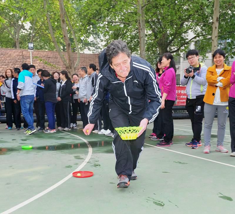 比賽全面展開,學(xué)生運(yùn)動(dòng)員們?cè)谔?、短跑、長(zhǎng)跑、鉛球、跳遠(yuǎn)等項(xiàng)目中展開激烈角逐,中外教師則在踢毽球、快樂(lè)套圈、搶種搶收、車輪滾滾等趣味項(xiàng)目中一展身手。通過(guò)比賽,鍛煉了身體,交流了感情,增進(jìn)了友誼,展現(xiàn)了校園中西文化融合的濃厚國(guó)際化氛圍,為運(yùn)動(dòng)會(huì)增添了靚麗的風(fēng)景。