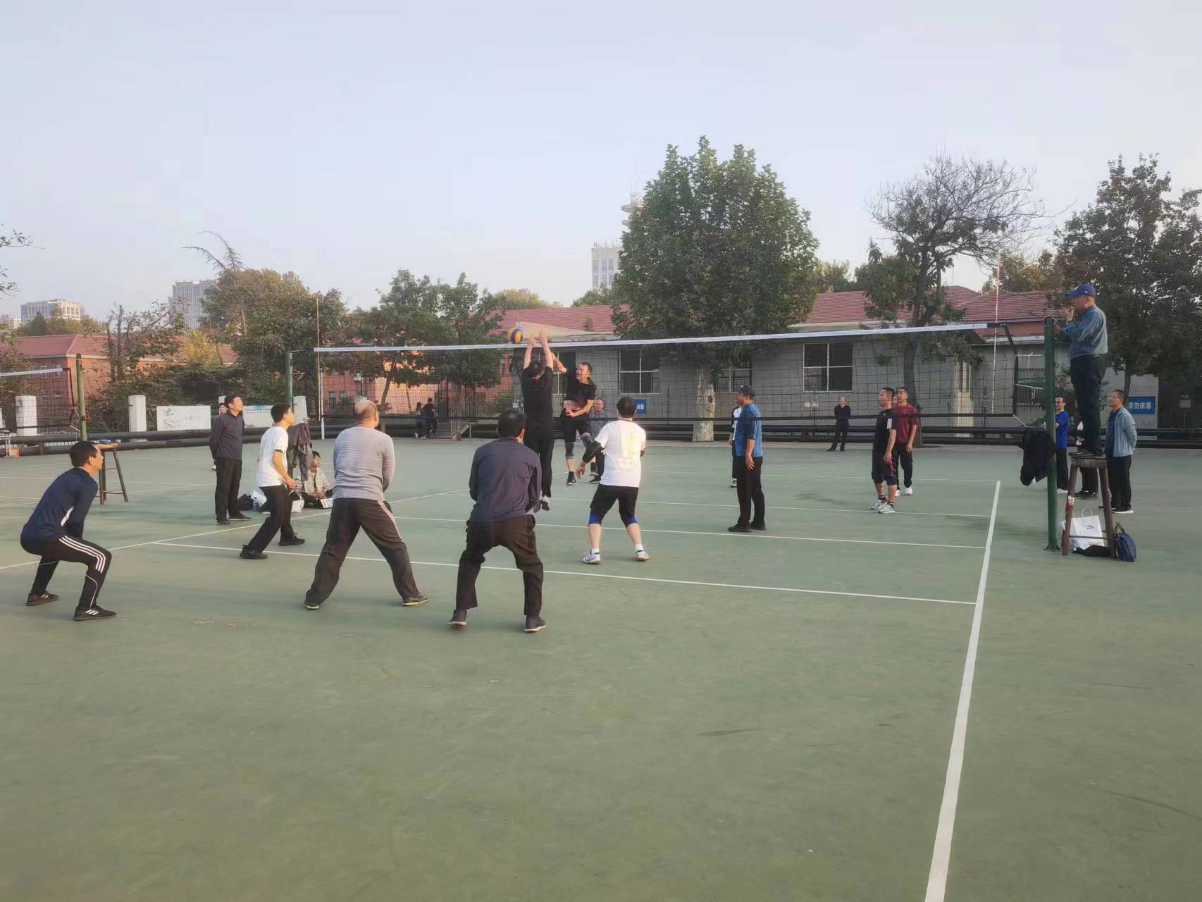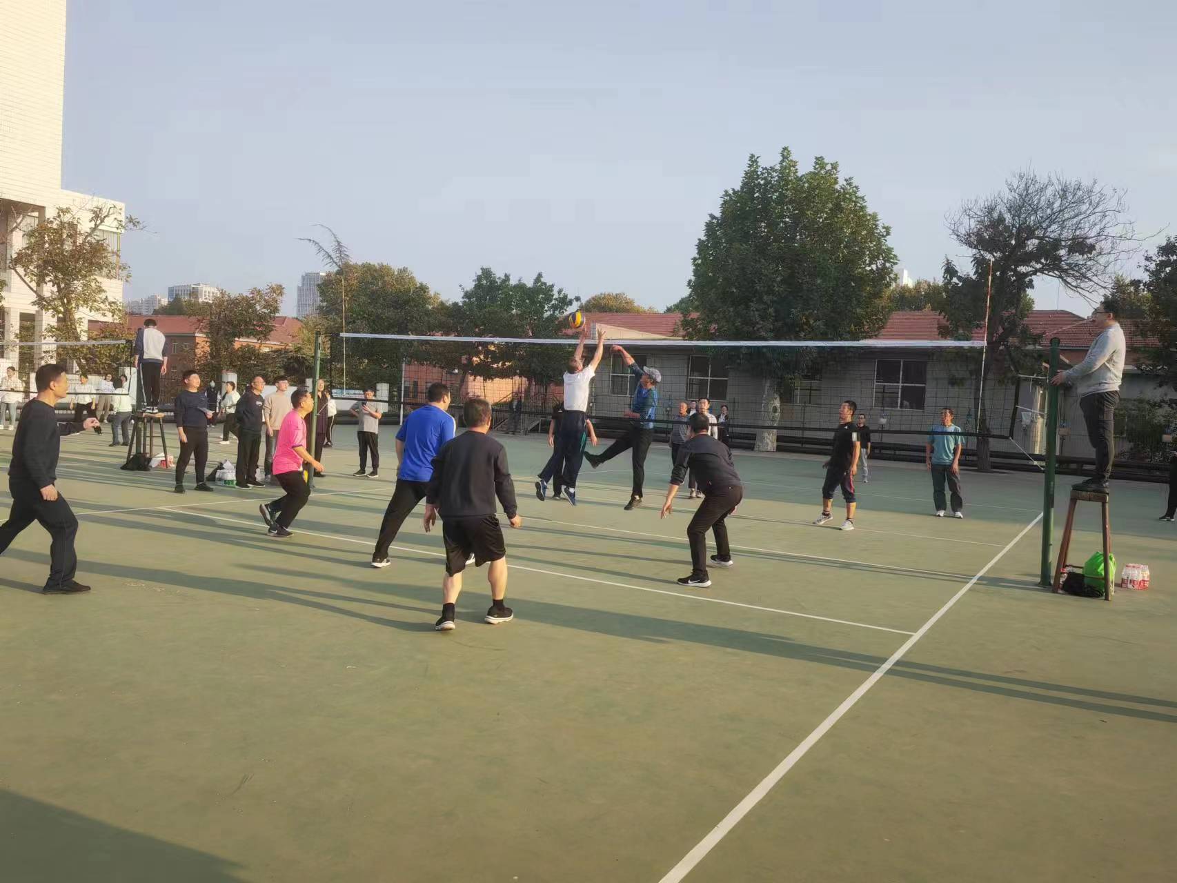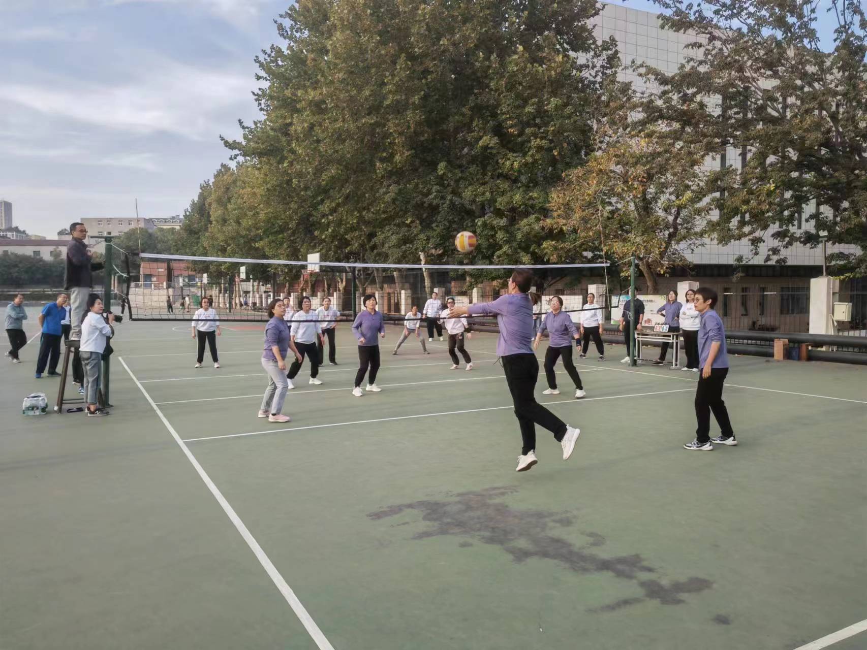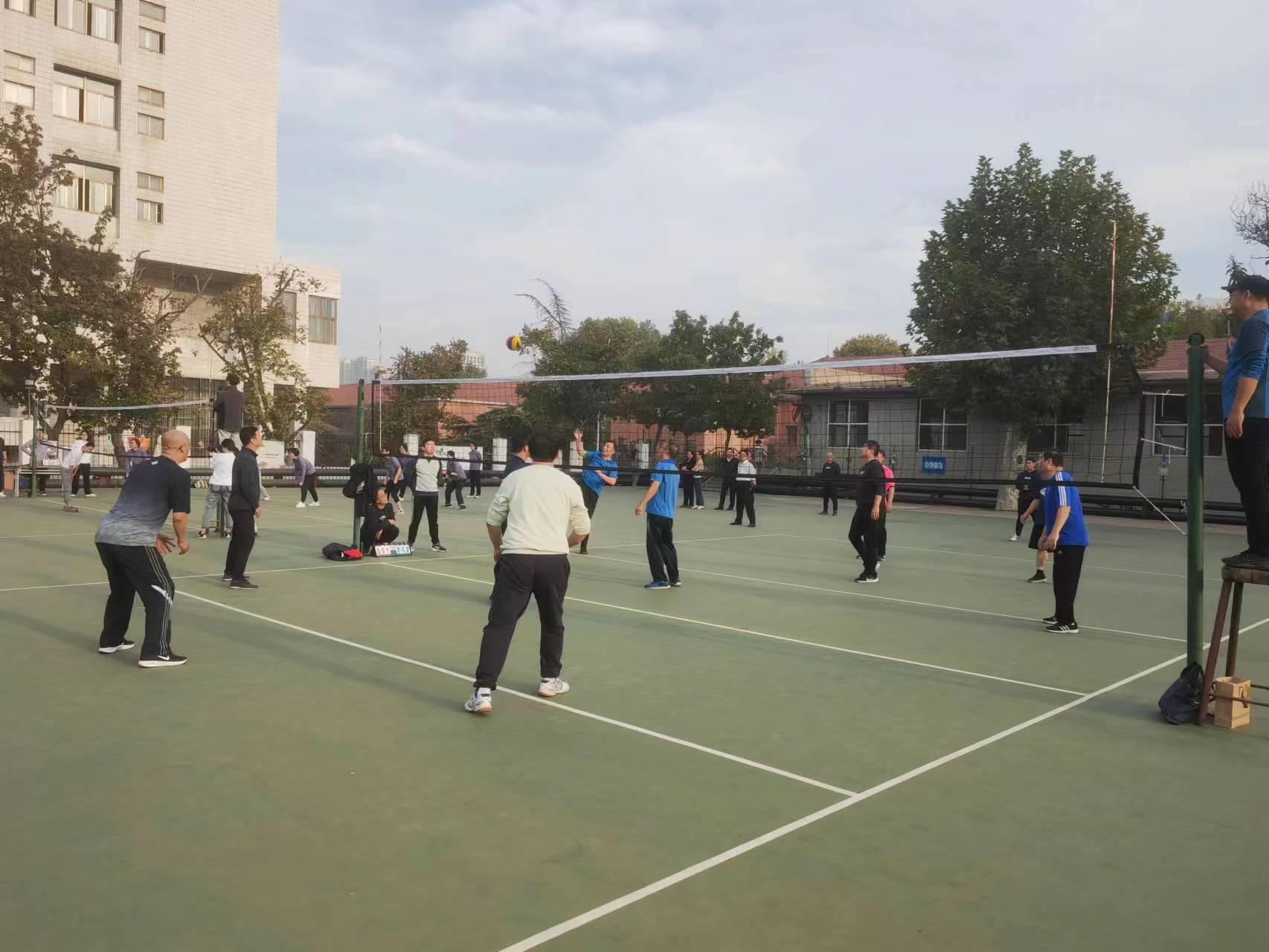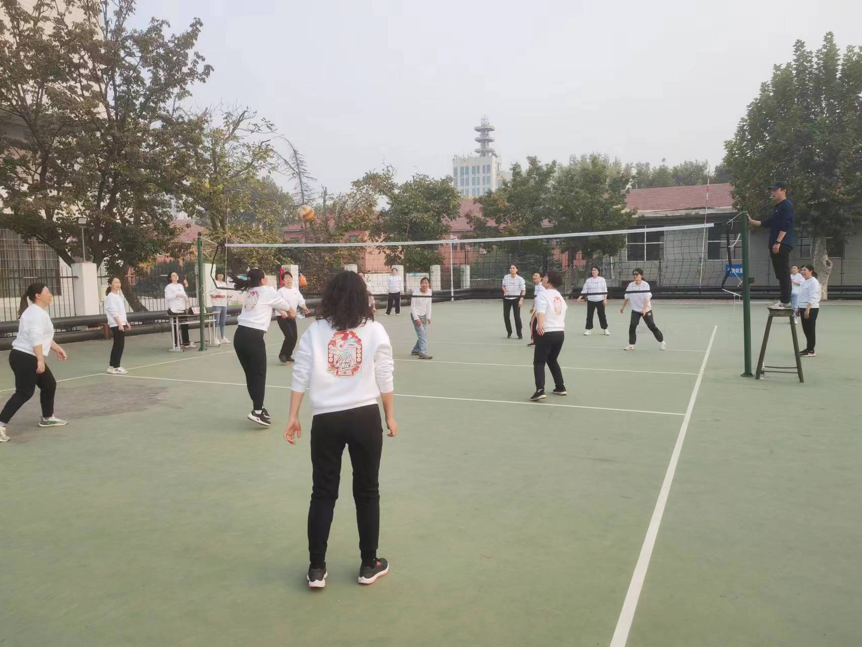 賽前,宗繼軍老師為裁判進行了專業(yè)培訓,確保裁判員公平、公正、準確、規(guī)范評判工會領導積極組隊、組織訓練,隊員積極配合,以勇奪第一的昂揚斗志投入到賽前訓練當中;賽中,教練員親臨現(xiàn)場指揮,科學調整戰(zhàn)術,隊員間團結協(xié)作,密切配合,時而大力扣殺,時而飛身救球,演繹了一場場高潮迭起、扣人心弦的精彩比賽,充分展示了教職工們奮力拼搏、團結協(xié)作、勇于爭先的精神風貌。