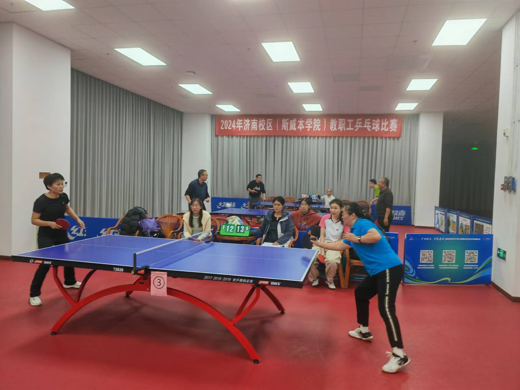 為推進濟南校區(qū)校園文化建設(shè),激發(fā)廣大教職工立德樹人、愛崗敬業(yè)、高質(zhì)量發(fā)展的使命感和工作熱情,提升乒乓球愛好者的技能和水平,校區(qū)工會舉辦了2024年教職工乒乓球個人排名比賽。比賽分為小組內(nèi)循環(huán)積分賽和晉級淘汰賽兩個階段,晉級16強隊員均需完成所需全部比賽,最終決出名次。