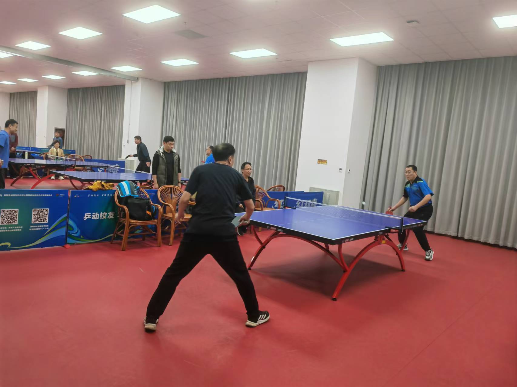 為了使比賽順利進行,組委會賽前認(rèn)真籌備、精心部署,賽中及時調(diào)度、妥當(dāng)安排;裁判及工作人員盡職盡責(zé)、熱情服務(wù),保障了比賽的順利進行和圓滿成功。賽場上,全體隊員各展技藝、大顯身手,時而奮力抽殺,時而飛身救球,比技術(shù)、賽心理、拼毅力,上演了一場場精彩的對決。賽場外,觀眾們加油助威,熱烈的喝彩聲不絕于耳。
