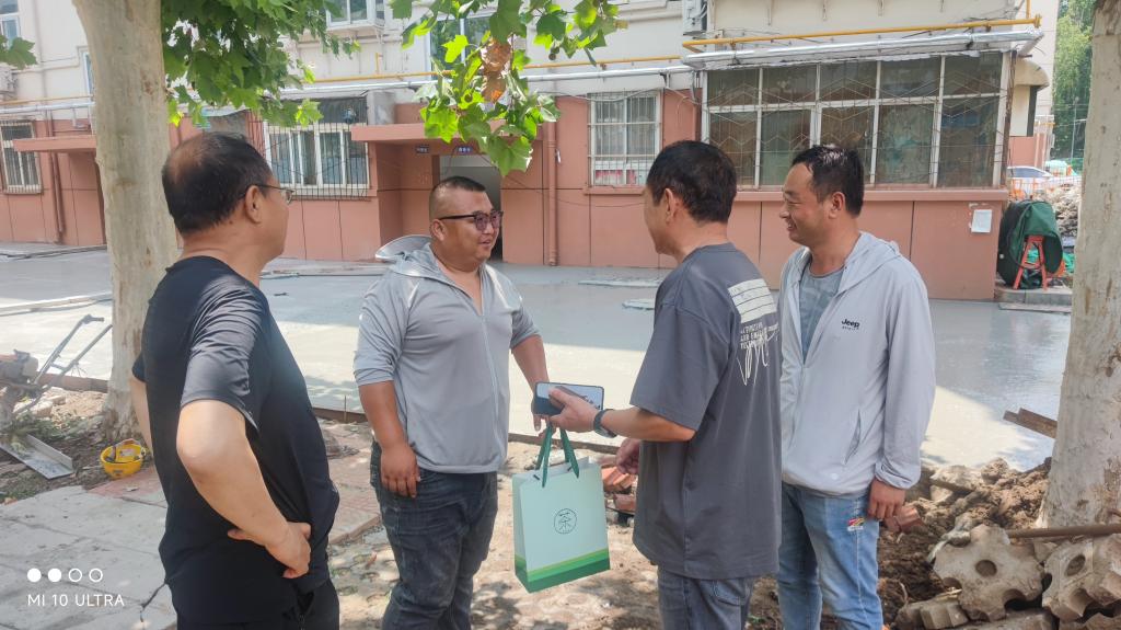 在老舊小區(qū)和雨污分流改造現(xiàn)場,施工人員正頂著烈日作業(yè)。一行人走進(jìn)施工區(qū)域,與項(xiàng)目負(fù)責(zé)人交流工程進(jìn)度,重點(diǎn)詢問安全生產(chǎn)和防暑預(yù)案落實(shí)情況。叮囑施工團(tuán)隊(duì)要科學(xué)調(diào)整作業(yè)時(shí)間,避開正午高溫時(shí)段,預(yù)防中暑事件發(fā)生,確保施工安全與工程進(jìn)度“兩不誤”。