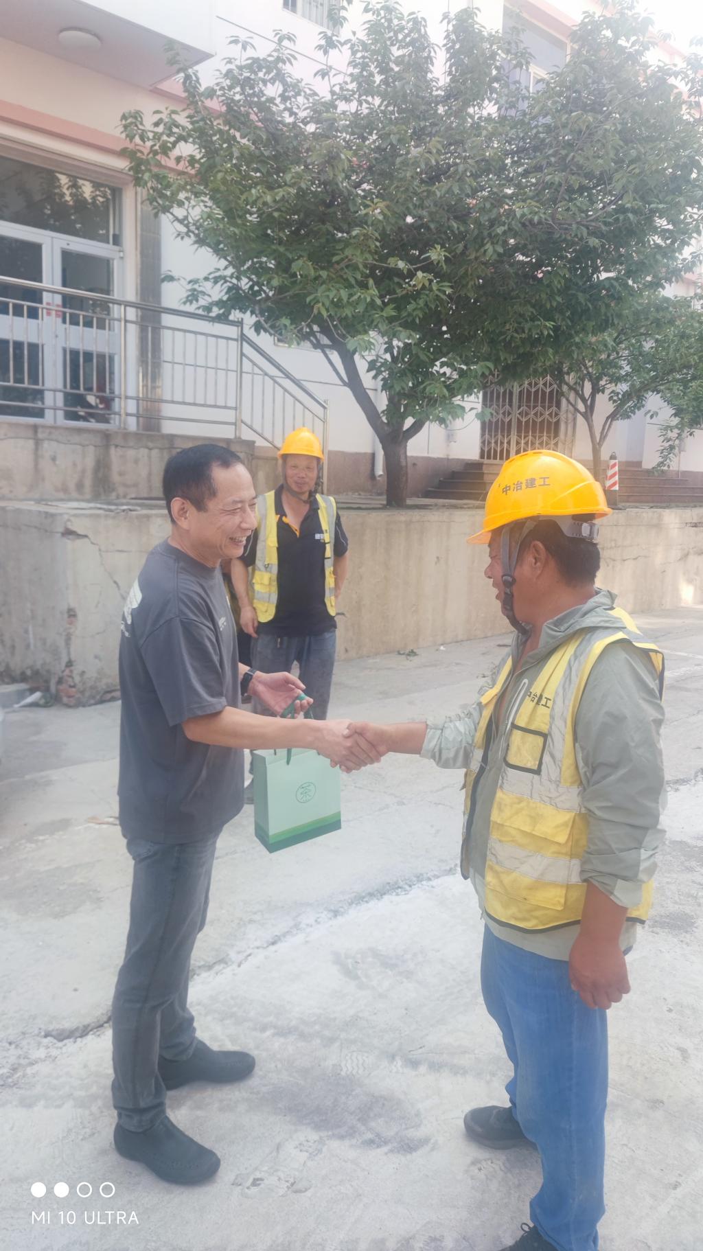 近期,濟(jì)南市高溫、高濕天氣持續(xù)肆虐,為體現(xiàn)校區(qū)對(duì)一線工作人員的關(guān)心關(guān)愛,79日校區(qū)黨委委員、機(jī)關(guān)黨總支書記仉興泉,校工會(huì)副主席董向陽先后來到物業(yè)保潔工作現(xiàn)場、門衛(wèi)值班室及老舊小區(qū)改造施工現(xiàn)場,為高溫下堅(jiān)守崗位的工作人員送去清涼與關(guān)懷。