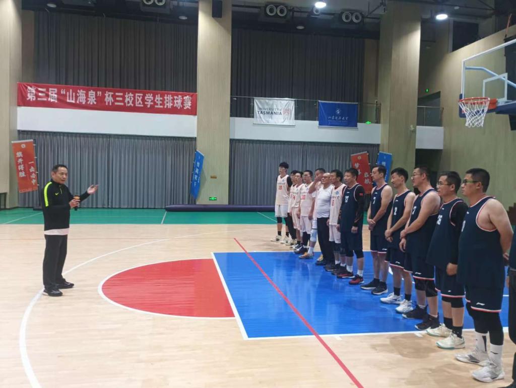 賽前,校區(qū)黨委委員、財(cái)經(jīng)系黨總支書記兼機(jī)關(guān)黨總支書記仉興泉發(fā)表熱情洋溢的講話,代表校區(qū)對(duì)到訪的山東交通學(xué)院教職工籃球隊(duì)表示熱烈歡迎。