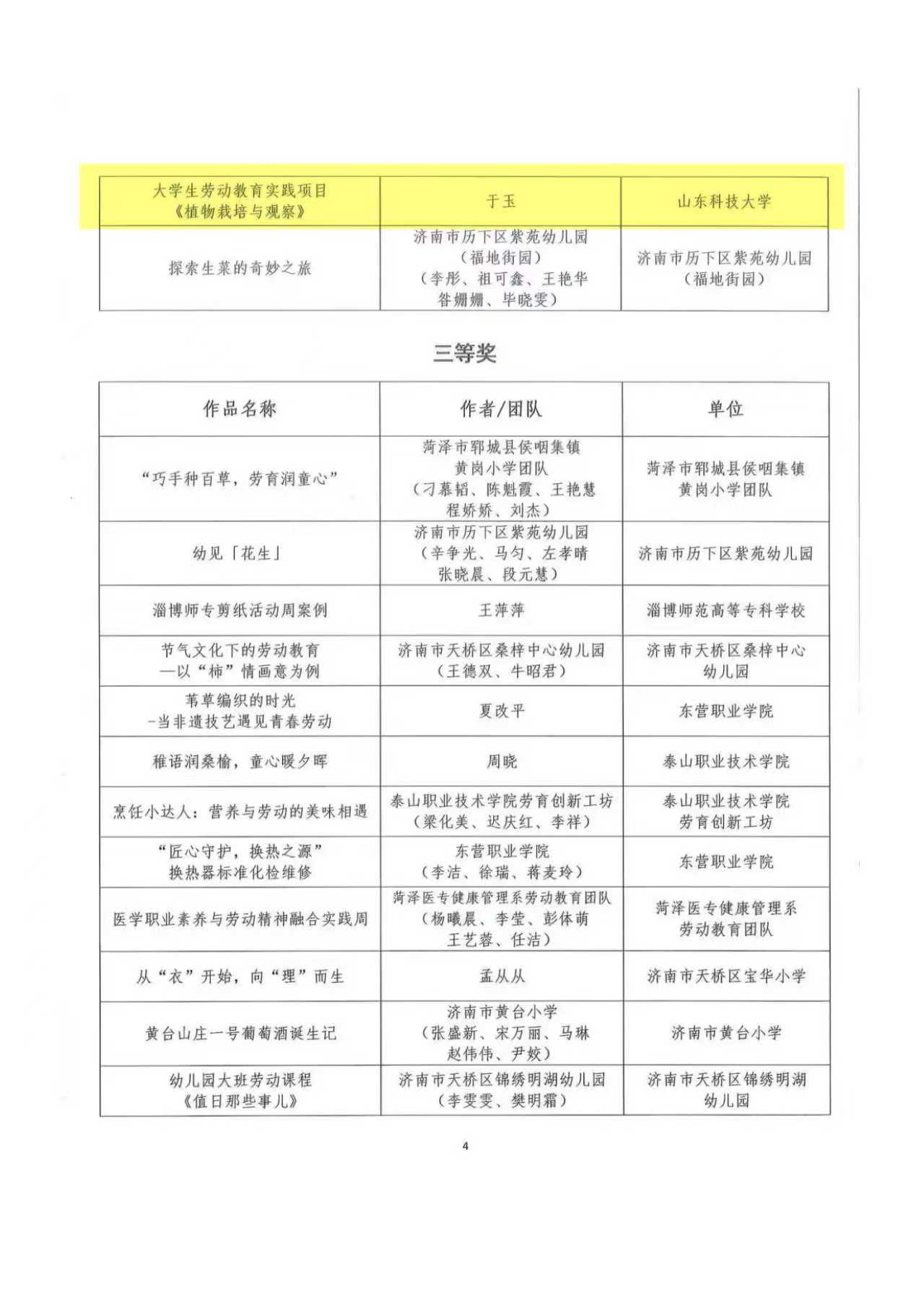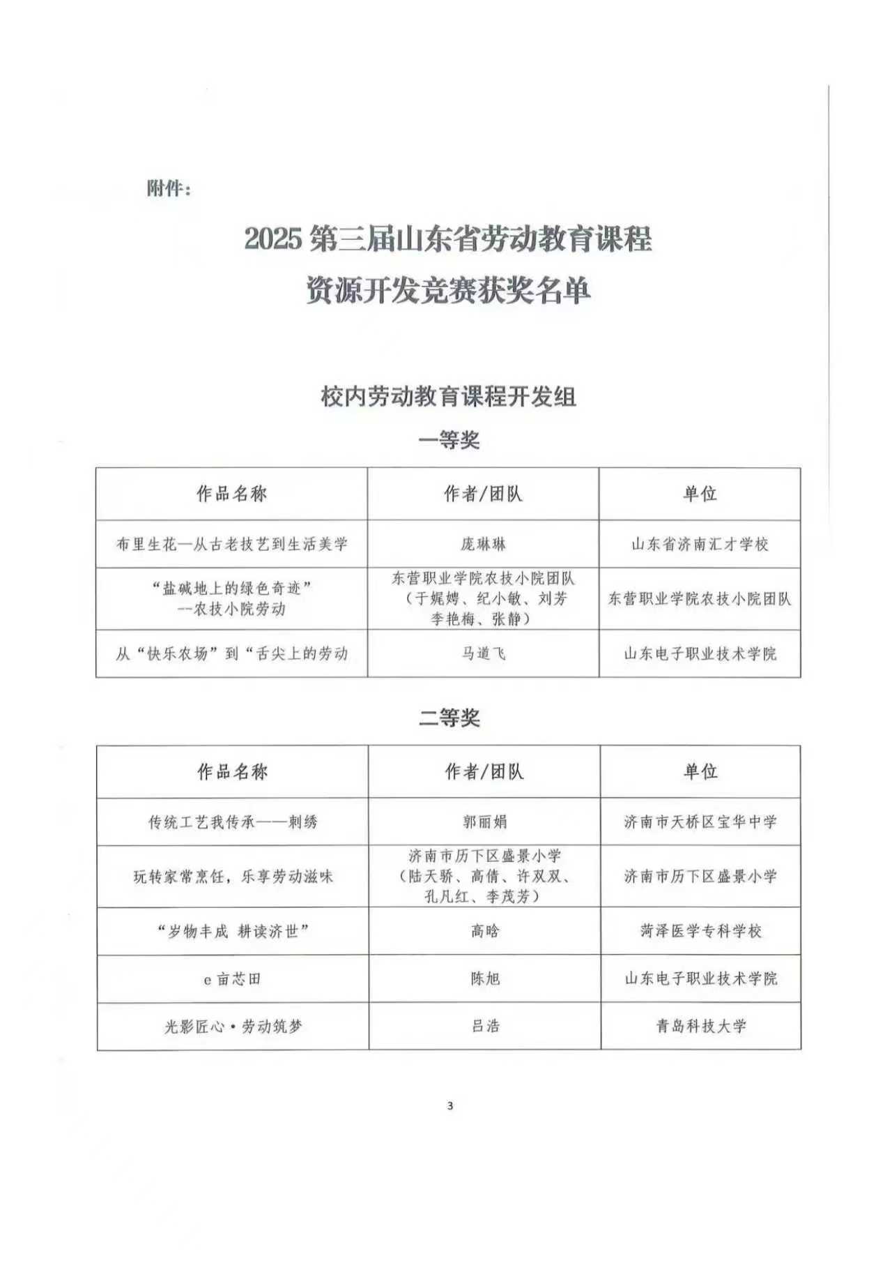 近日,財(cái)經(jīng)系于玉老師在山東省總工會(huì)、山東廣播電視臺(tái)、山東教育電視臺(tái)、山東成人教育協(xié)會(huì)、山東省戶(hù)外教育協(xié)會(huì)聯(lián)合舉辦的“2025第三屆山東省勞動(dòng)教育課程資源開(kāi)發(fā)競(jìng)賽”中,獲得校內(nèi)勞動(dòng)教育課程開(kāi)發(fā)組二等獎(jiǎng)。