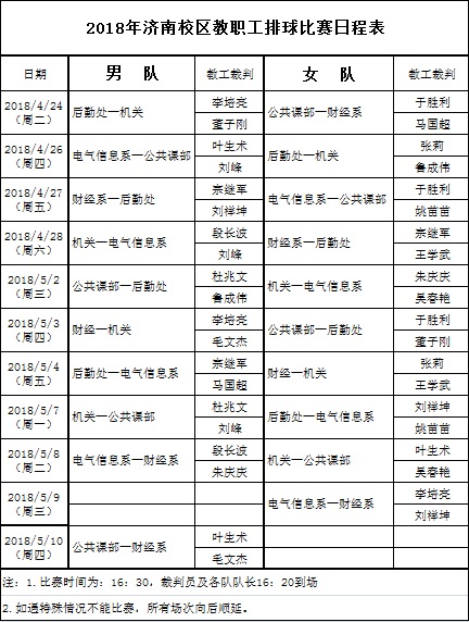 2018年濟南校區(qū)教職工排球比賽日程表-新