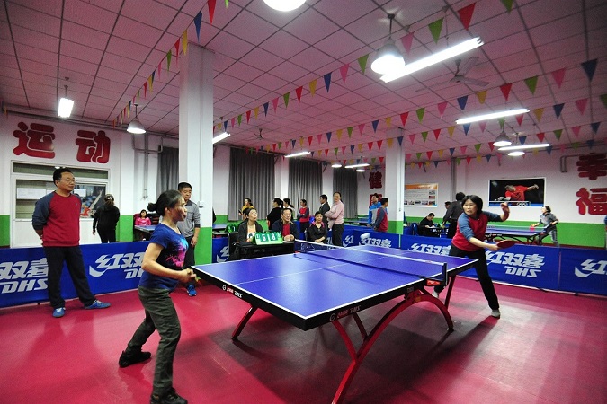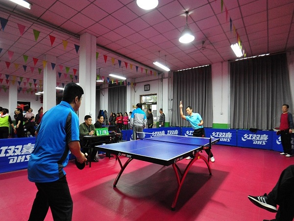 本次比賽每兩隊之間進行7場比賽,分別是男單、女單、男雙、女雙、混雙、女單、男單;每場比賽采取5局3勝制,勝者積2分,負者積1分,棄權(quán)積0分,每位隊員只能出場一次,保證了教職工參與面廣、人員多,極大地調(diào)動了教職工活動的積極性。