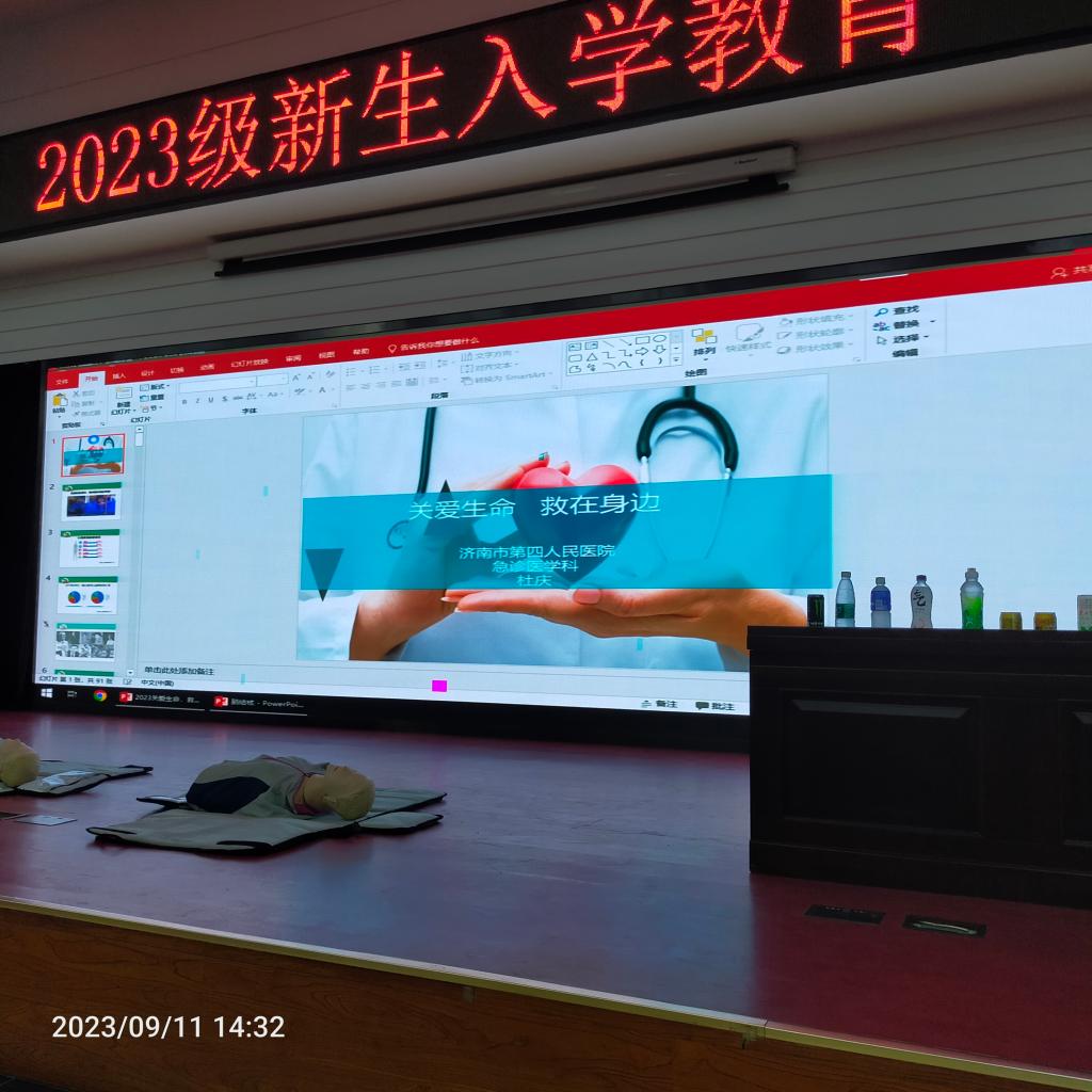 為促進2023級新同學(xué)進一步了解健康的基本知識,增加同學(xué)們對健康意識的重視度,激發(fā)大學(xué)生自救互救意識和應(yīng)對突發(fā)事件的處置能力,結(jié)合我校迎新工作部署,9月11日下午,校區(qū)邀請了省立三院呼吸科劉倩醫(yī)師和濟南市第四院人民醫(yī)院的杜慶醫(yī)師來校舉辦“2023級新生入學(xué)教育健康知識講座",醫(yī)務(wù)室醫(yī)護人員及近600名新生聆聽了講座。