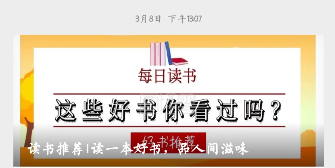 書籍是橫渡時間大海的航船。校區(qū)學生會借助網(wǎng)絡開放文庫和自有圖書,依托微信公眾號開設“讀書推薦”專欄,每周推送名著導讀,并附上在線閱讀鏈接,方便學生線上閱讀。