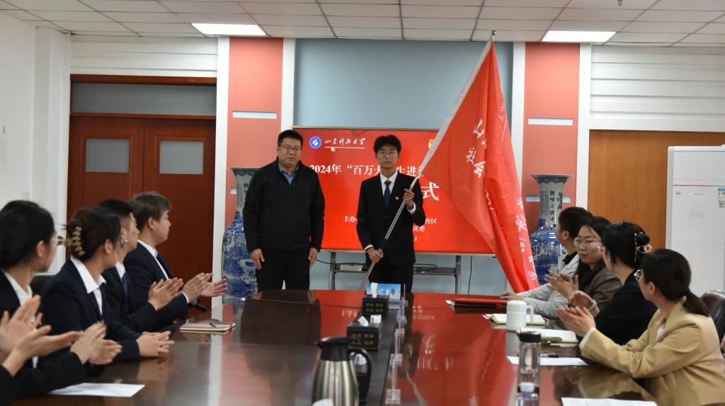 啟動(dòng)儀式上,范文亮為“百萬大學(xué)生進(jìn)社區(qū)”專項(xiàng)行動(dòng)青年志愿者服務(wù)隊(duì)授旗,社會(huì)實(shí)踐指導(dǎo)教師代表與世貿(mào)天城中心北社區(qū)簽署共建協(xié)議,學(xué)生代表邢竹秀發(fā)言。啟動(dòng)儀式結(jié)束后,學(xué)生代表一同參觀了官扎營街道世貿(mào)天城中心北社區(qū)和“1922電競(jìng)新媒體產(chǎn)業(yè)園”。
