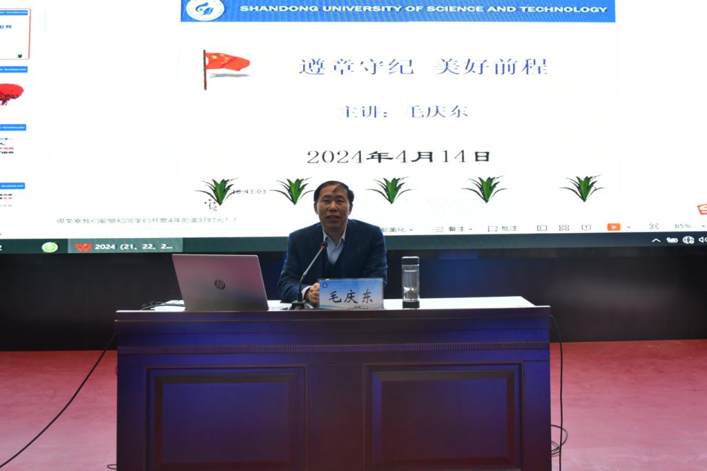 為加強(qiáng)文明校園建設(shè),營造積極、健康、文明、安全、和諧的育人氛圍,4月14日-18日,校區(qū)黨委副書記兼學(xué)團(tuán)工作部主任、學(xué)生黨總支書記毛慶東在學(xué)生中展開宣講活動(dòng),宣講覆蓋2021、2022、2023級(jí)共1500余人。