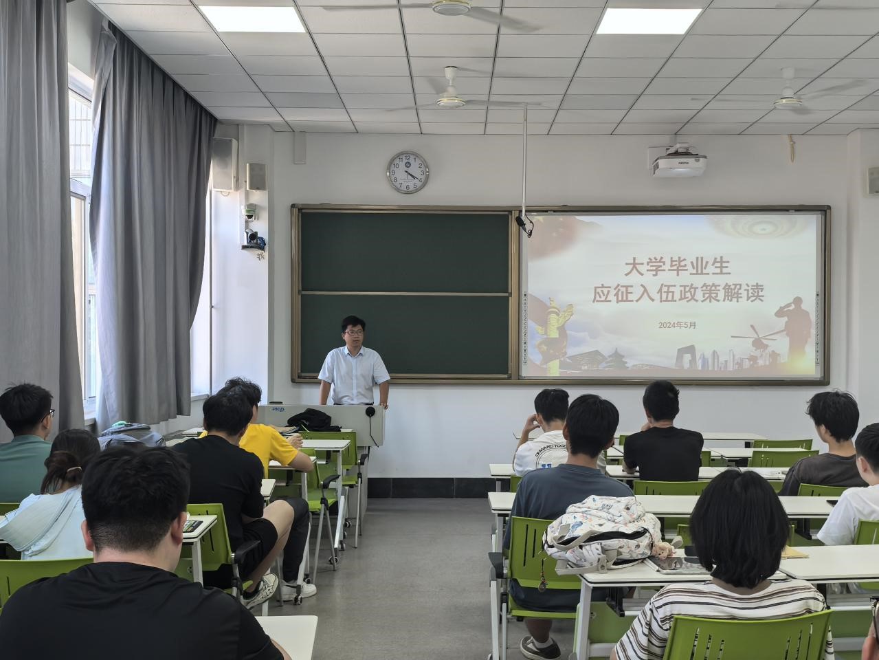 5月30日下午,濟(jì)南校區(qū)開展“畢業(yè)生就業(yè)促進(jìn)周”之大學(xué)生參軍入伍政策宣講活動,邀請馬國超老師進(jìn)行參軍入伍政策解讀,畢業(yè)年級輔導(dǎo)員及有入伍意向的學(xué)生參加了宣講會。