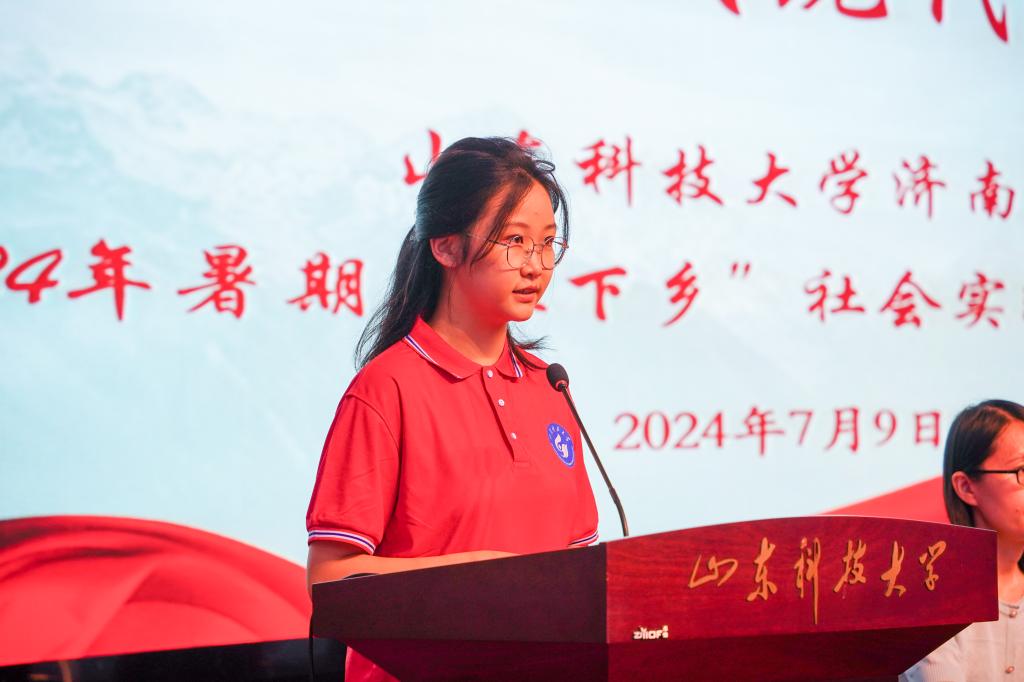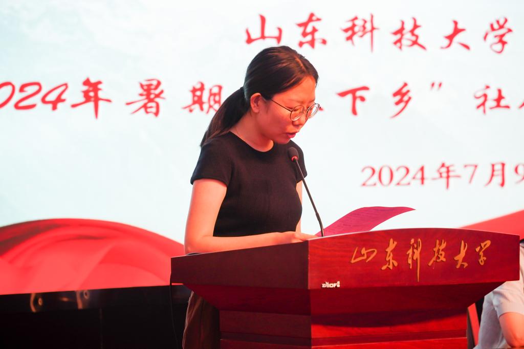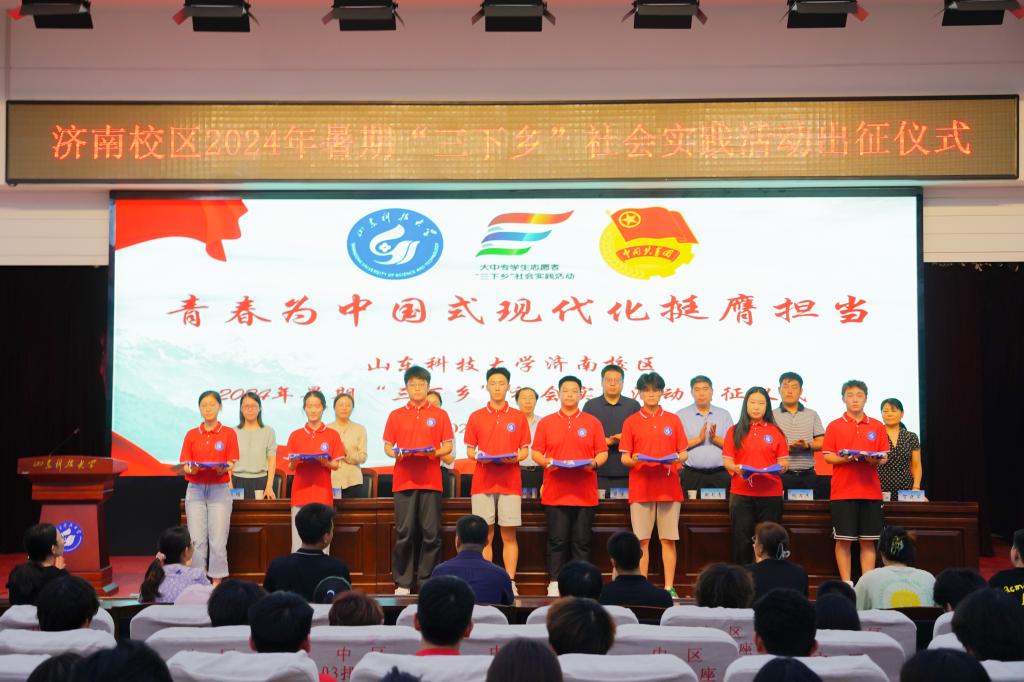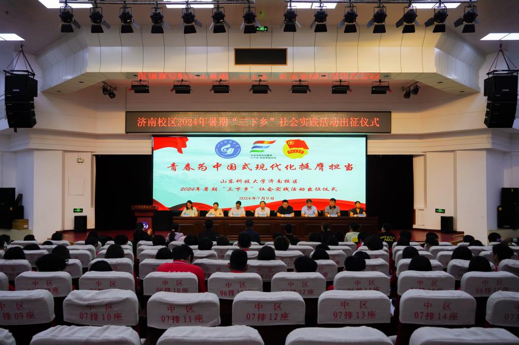 7月9日下午,濟南校區(qū)2024年暑期“三下鄉(xiāng)”社會實踐活動出征儀式在圖書館報告廳舉行。共青團天橋區(qū)委書記范文亮,濟南校區(qū)黨委副書記毛慶東出席,校區(qū)相關部門負責人、全體學生工作干部及“三下鄉(xiāng)”社會實踐重點團隊師生代表100余人參加。