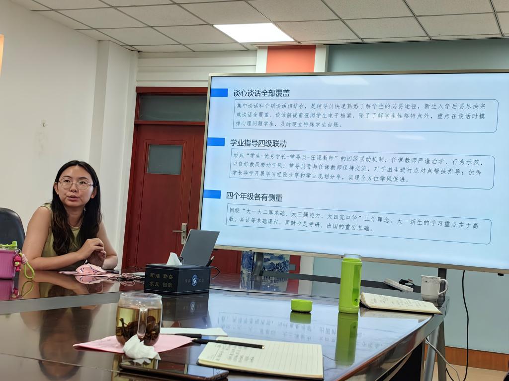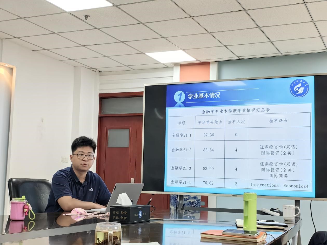 會上,各輔導員全面總結了所帶學生班級整體情況,客觀呈現(xiàn)了班級間、專業(yè)間、宿舍間以及前后學期之間的學習成績情況,認真剖析了學風建設班級整體情況、個體案例及其產生原因,針對短板弱項準確提出了下一步實施方案和具體安排。馬國超、張越、陸剛對畢業(yè)班就業(yè)意向進行了詳細分析,提出“分類分層指導與學業(yè)規(guī)劃引導相結合、政策解讀宣貫與訪企參觀相結合、高質量就業(yè)與風險預判相結合”等工作思路;王景波、陳芳州、卓國梁一一列舉了2023級進步和退步較大學生學習成績、遵規(guī)守紀、課堂表現(xiàn)等情況,總結了前期“一對一”學習幫扶小組、宿舍內學習討論小組等工作經驗,強調基礎文明建設對學風建設具有積極作用和深遠意義,對解決好“為什么學”“怎么學”“以什么樣的狀態(tài)學”三大問題提出具體辦法;周亞玲、王龍、劉夢昕聚焦2022級班級學風特點、整體變化規(guī)律、集體與個體關系,提出氛圍營造、制度管理、問題擊破、誠信教育等實施措施,確保低年級到高年級順利過渡;馬力從“時、度、效”三方面展望了新生班級學風建設規(guī)劃,強調要在“時”上下功夫,在“度”上布新局,在“效”上尋突破;魏壽美回顧了2024屆畢業(yè)生就業(yè)和深造情況,針對金融學專業(yè)所取得“深造率達51.35%”成績進行了經驗分享,提出留學規(guī)劃要“早啟動、早謀劃、早行動”;滕亞鵬總結歸納了泰國格樂項目學生特點,分析了各類學生接受教育的實施路徑,并提出強化規(guī)矩意識、增強集體凝聚力、建強學生干部隊伍等措施。