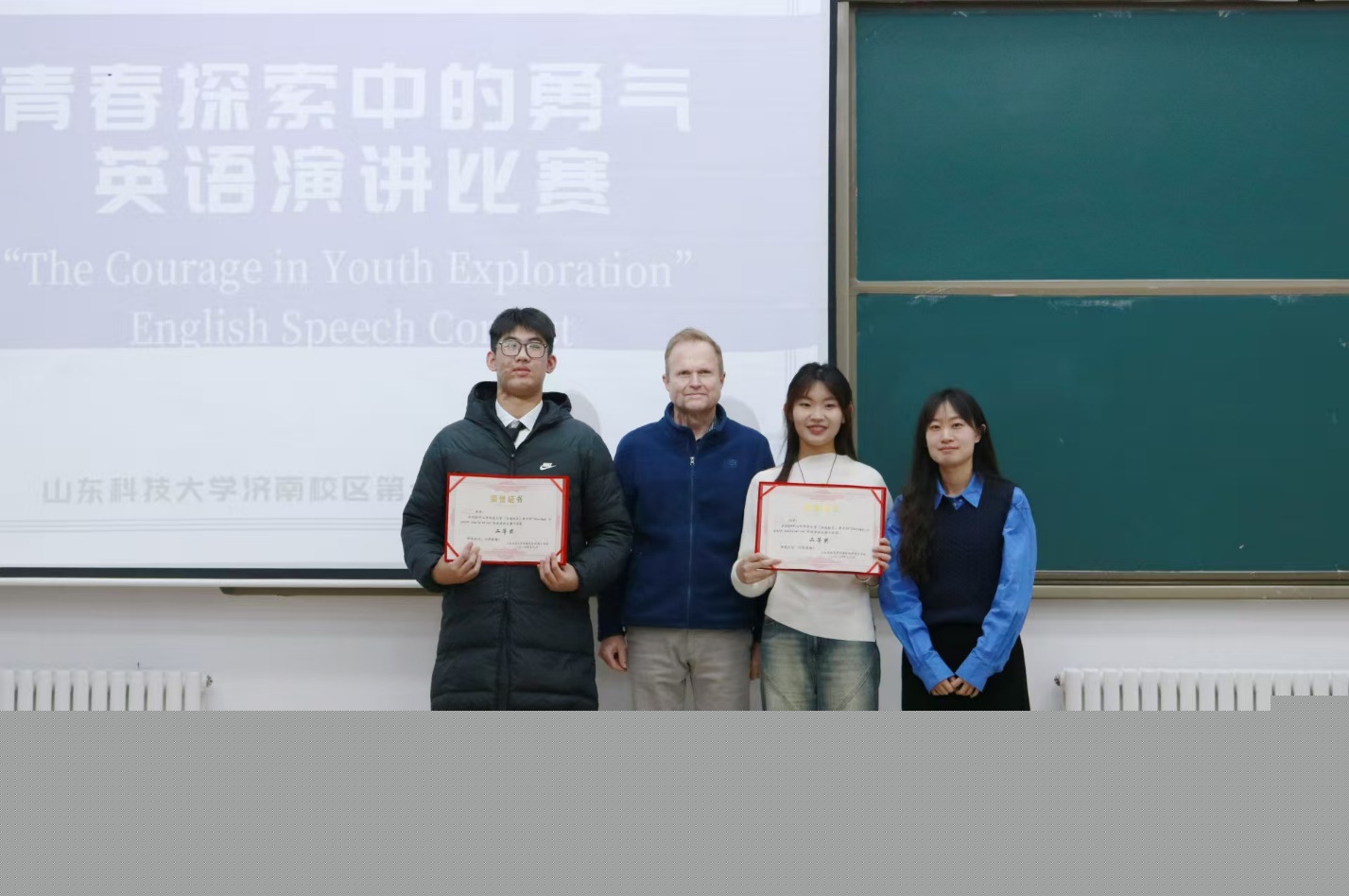 12月10日,由校區(qū)學(xué)團(tuán)工作部主辦,校區(qū)學(xué)生會科技創(chuàng)新部承辦的山東科技大學(xué)濟(jì)南校區(qū)第十五屆大學(xué)生英語文化節(jié)系列活動——“青春探索中的勇氣”英語演講比賽決賽在主樓103圓滿落幕,活動邀請到中方英語教師孫瀟琦、劉敏以及外方英語教師Dave和Edward擔(dān)任評委,來自不同年級的學(xué)生們踴躍參與。