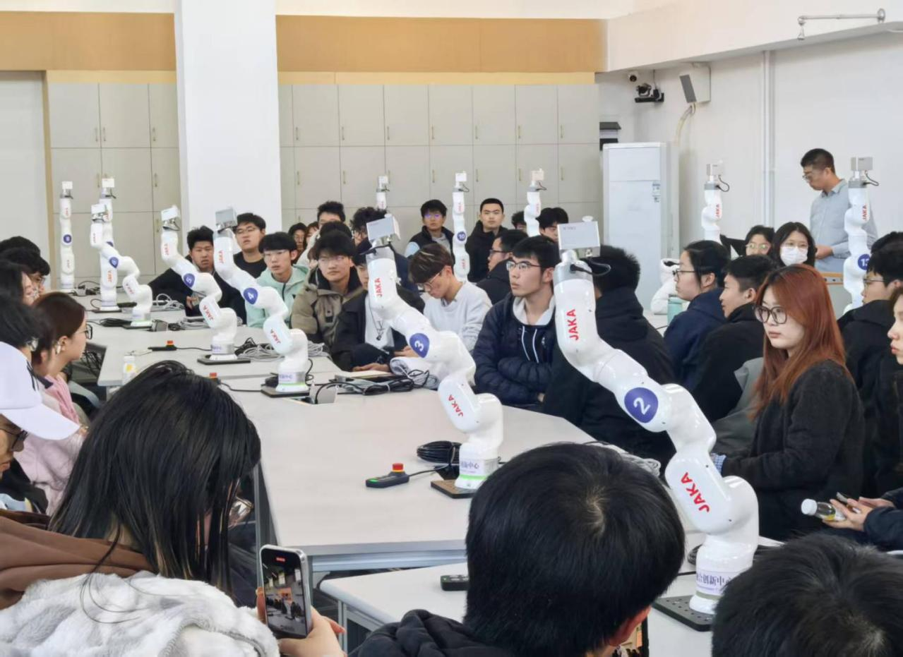 張帥帥老師以宇樹機(jī)器人和DeepSeek模型為切入點(diǎn),系統(tǒng)解析人工智能發(fā)展現(xiàn)狀與趨勢(shì),通過算法工程師、AI研發(fā)師等崗位的薪資數(shù)據(jù)分析,闡明機(jī)器人領(lǐng)域高回報(bào)與高競(jìng)爭(zhēng)并存的職業(yè)前景。現(xiàn)場(chǎng)重點(diǎn)展示智能機(jī)器人科教中心的工業(yè)級(jí)設(shè)備,借助機(jī)械臂精準(zhǔn)完成數(shù)學(xué)運(yùn)算、詩詞創(chuàng)作等操作,直觀呈現(xiàn)社團(tuán)硬件實(shí)力。