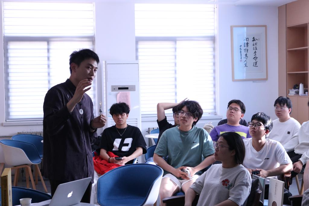 活動聚焦清代宮廷首飾技藝的傳承與創(chuàng)新。呂紀凱以故宮博物院館藏文獻《清宮后妃首飾圖典》為切入點,系統(tǒng)解析花絲鑲嵌與點翠工藝的發(fā)展脈絡,現(xiàn)場演示掐絲、鎏金、點翠等核心技法。師生通過觀賞清代復刻首飾、上手體驗制作掐絲書簽等環(huán)節(jié),直觀感受“燕京八絕”非遺技藝的精妙匠心。