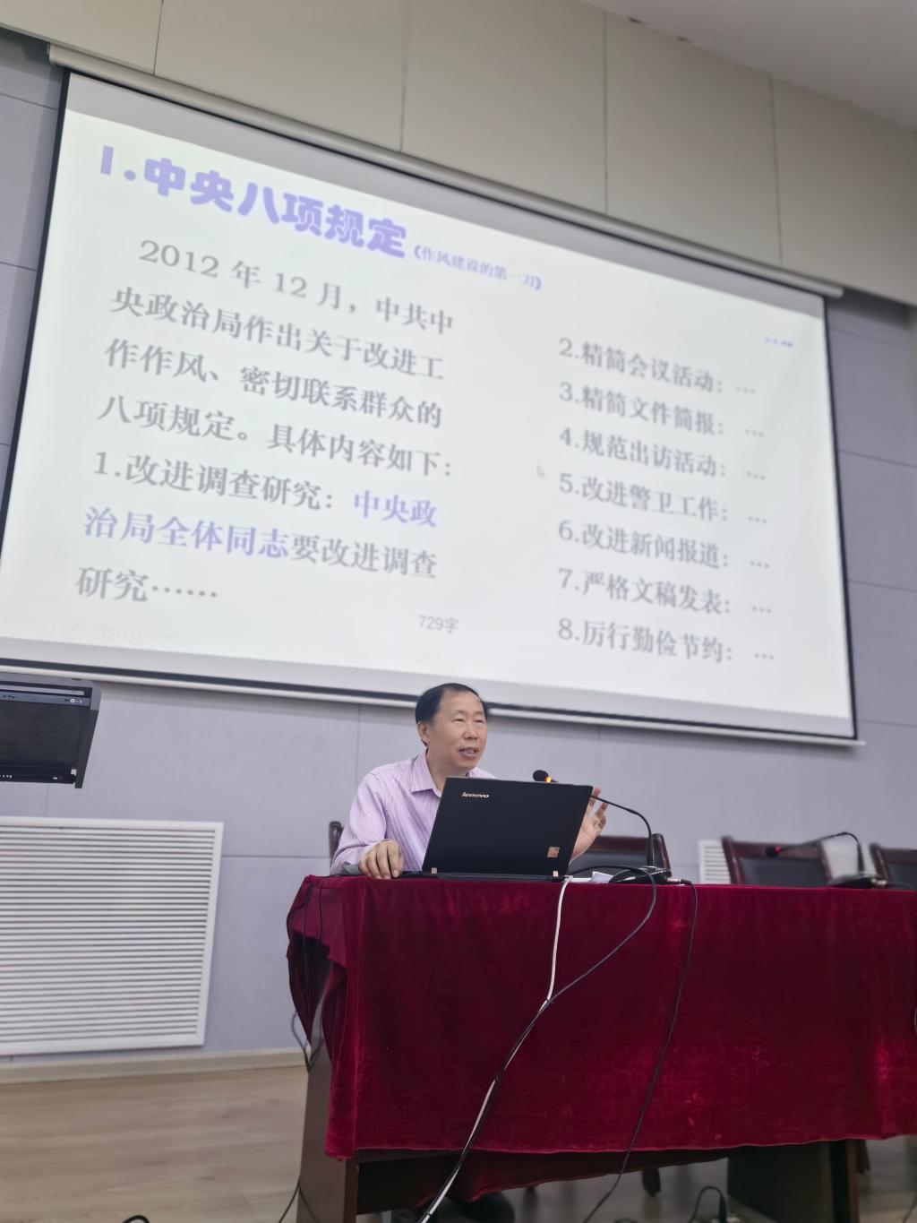 黨總支書記毛慶東以《深入解讀十八屆中央政治局關(guān)于改進(jìn)工作作風(fēng)、密切聯(lián)系群眾的八項(xiàng)規(guī)定》為題講授專題黨課。黨課從主要內(nèi)容、實(shí)踐要求、實(shí)施細(xì)化三個(gè)維度,深入解讀了貫徹落實(shí)中央八項(xiàng)規(guī)定精神的重大意義和時(shí)代價(jià)值。與會(huì)人員一致認(rèn)為:中央八項(xiàng)規(guī)定是新時(shí)代全面從嚴(yán)治黨的"第一刀",是加強(qiáng)黨的作風(fēng)建設(shè)的"動(dòng)員令",必須長(zhǎng)期堅(jiān)持、嚴(yán)格執(zhí)行。