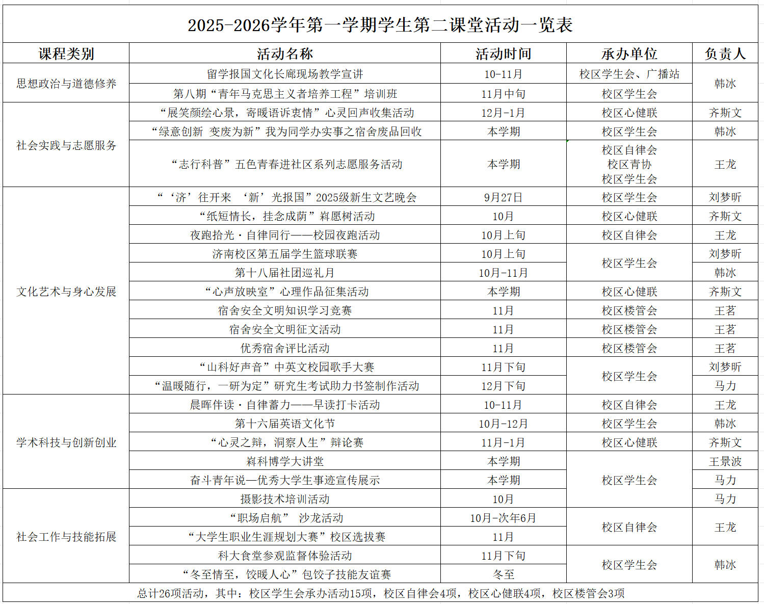 2025-2026學(xué)年第一學(xué)期學(xué)生第二課堂活動一覽表
