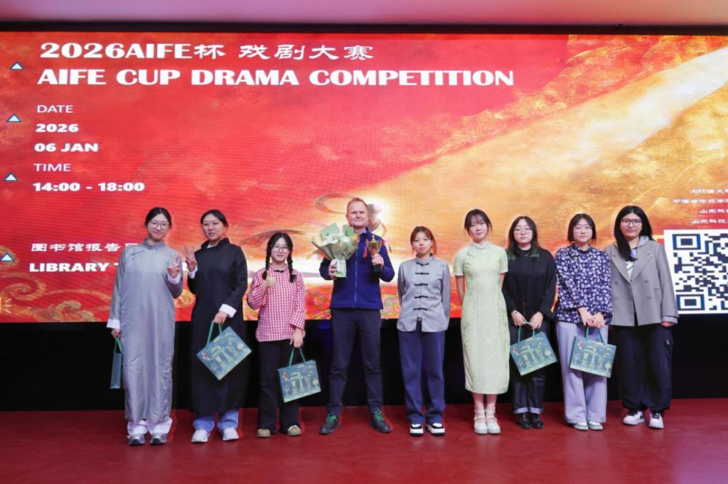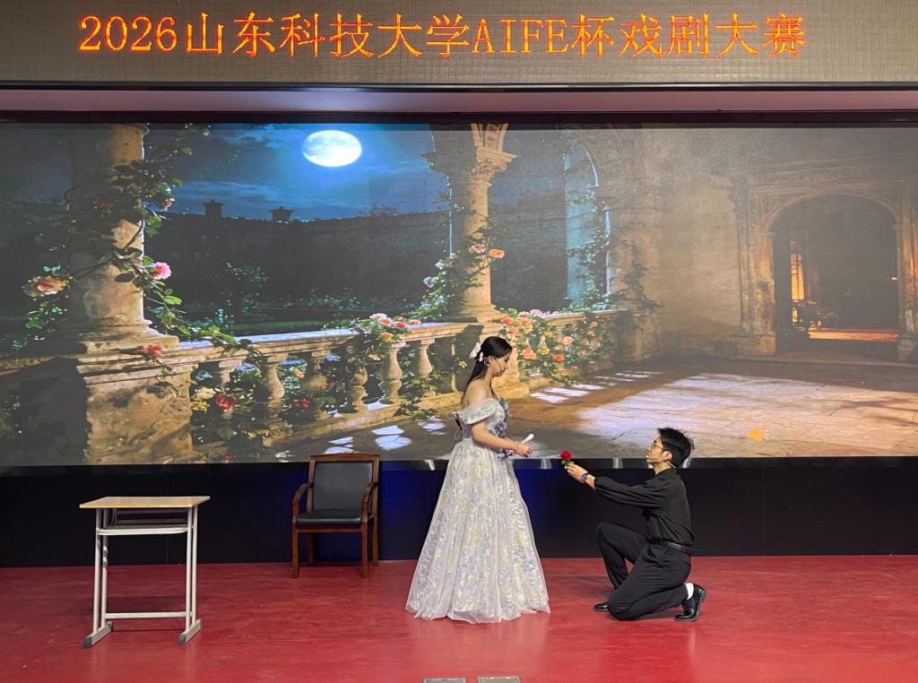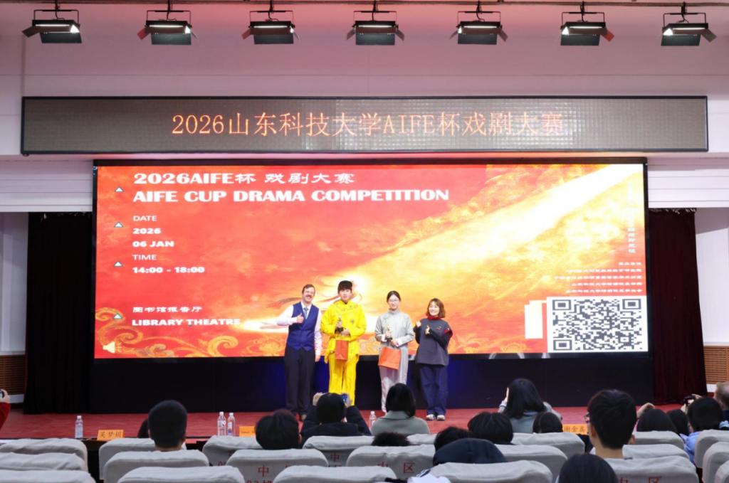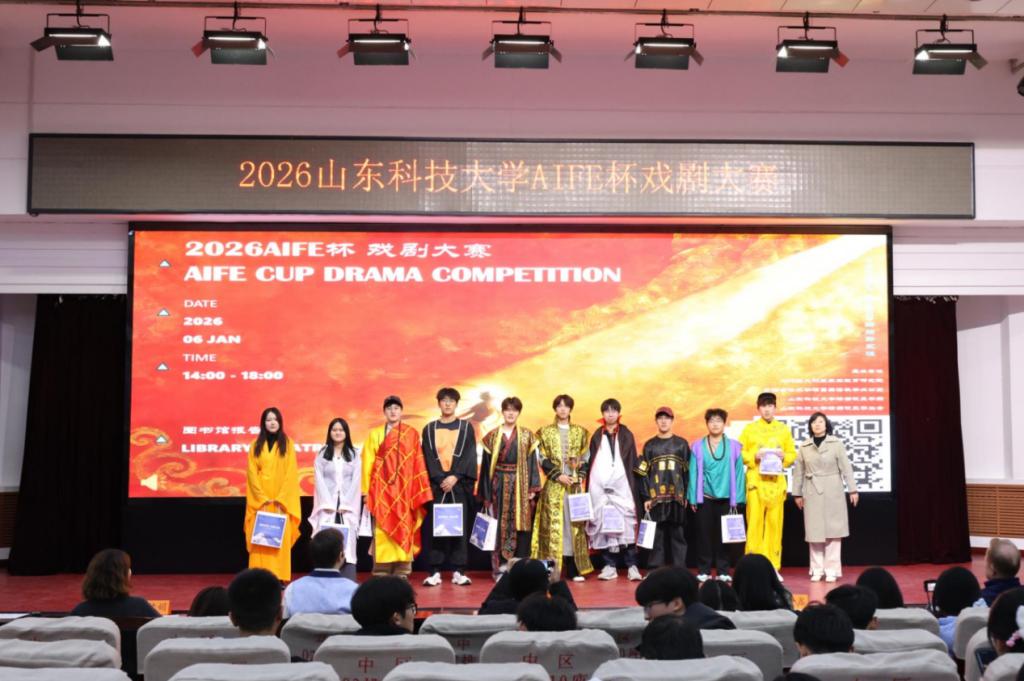 近日,山東科技大學(xué)濟(jì)南校區(qū)“AIFE杯”戲劇大賽在圖書館報(bào)告廳成功舉辦。本次大賽由AIFE山東科技大學(xué)項(xiàng)目分部主辦、濟(jì)南校區(qū)學(xué)生會承辦,吸引了來自6個不同專業(yè)的參賽隊(duì)伍同臺競技,呈現(xiàn)了一場融匯中西文化的戲劇盛宴。校區(qū)國際交流部楊朋、中澳項(xiàng)目主任王乙良、多名外籍教師及學(xué)生工作干部擔(dān)任評委,與現(xiàn)場觀眾共同見證了這場精彩展演。