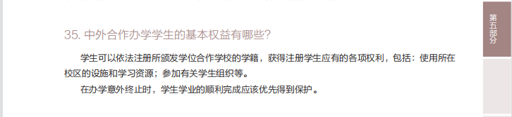 為了進(jìn)一步加強(qiáng)對(duì)中外合作辦學(xué)政策的宣傳,使廣大校區(qū)師生更好地了解和掌握中外合作辦學(xué)信息,國際交流與合作辦公室陸續(xù)推出《中外合作辦學(xué)100問》的學(xué)習(xí)活動(dòng),定期更新由中國教育國際交流協(xié)會(huì)編寫的手冊(cè)內(nèi)容。