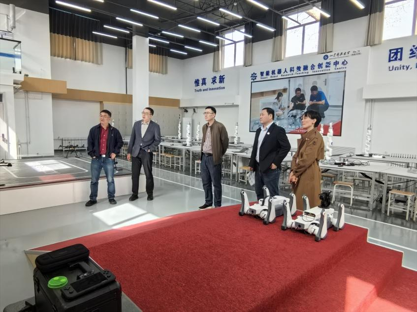 3 月 25 日,山東大學控制科學與工程學院黨委副書記湯慶新,學院教授、機器人工程系副主任、智能無人系統(tǒng)教育部工程研究中心辦公室主任張國騰,到訪濟南校區(qū)開展調研交流。濟南校區(qū)管委常務副主任郭加書,校區(qū)管委副主任兼教務部主任劉國棟,教務部副主任朱其剛、范明芳,智能機器人科教融合創(chuàng)新中心主任張帥帥參加交流活動。