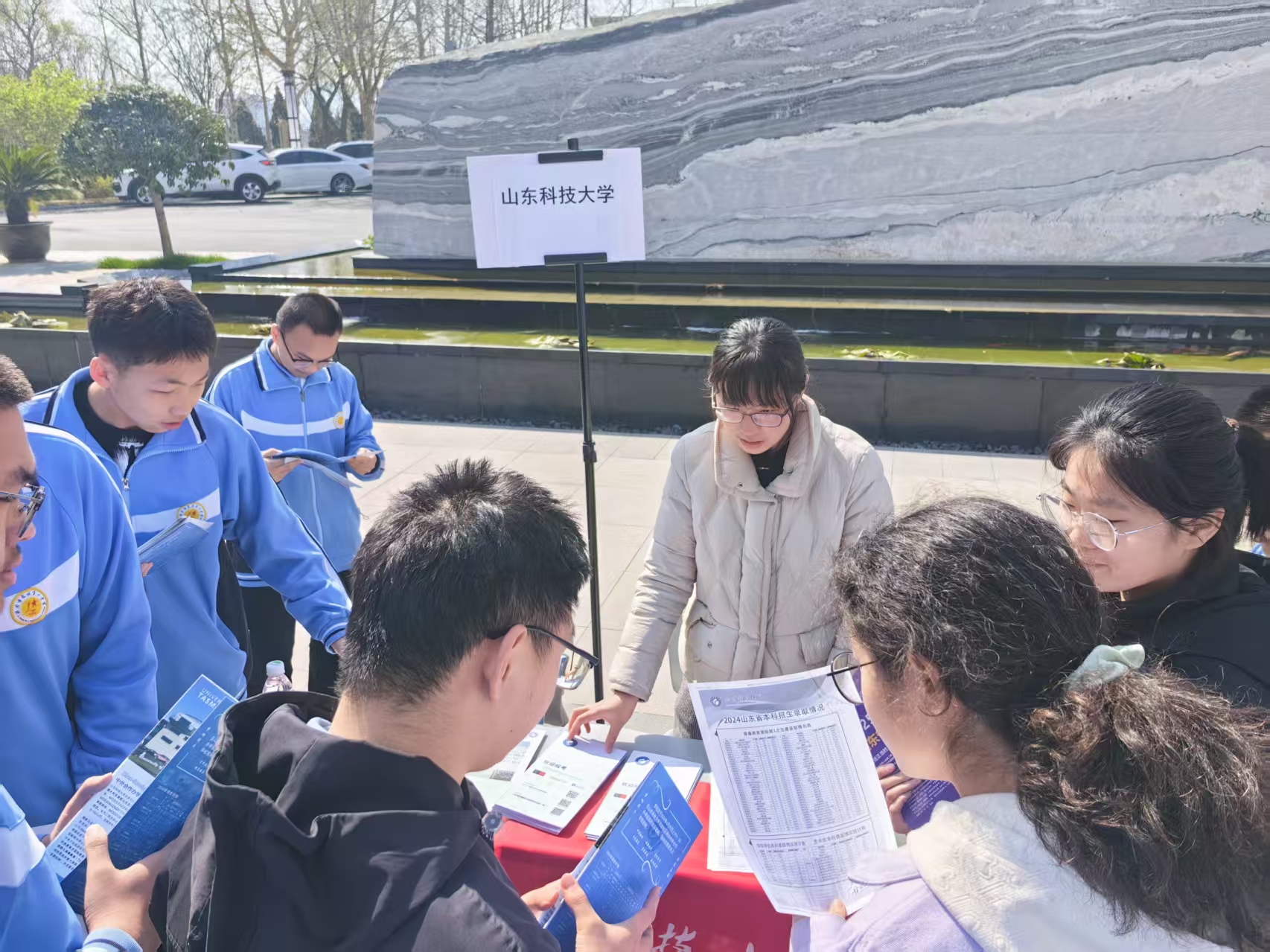 2025年3月28日-4月29日,根據(jù)教務(wù)處招生辦公室統(tǒng)一安排,校區(qū)教務(wù)部聯(lián)合校區(qū)其他部門(mén)工作人員參加了由山東教育衛(wèi)視、新浪網(wǎng)山東站、名榜教育舉辦的招生宣傳活動(dòng)。赴山東省實(shí)驗(yàn)中學(xué)、濟(jì)南市歷城第二中學(xué)、冠縣第一中學(xué)等16所省內(nèi)高中開(kāi)展招生宣傳,為高中學(xué)子現(xiàn)場(chǎng)答疑,針對(duì)考生個(gè)人實(shí)際情況進(jìn)行個(gè)性化指導(dǎo)。活動(dòng)期間共計(jì)發(fā)放宣傳材料12000余份,成效顯著,反響強(qiáng)烈,為2025年招生工作奠定了堅(jiān)實(shí)基礎(chǔ)。