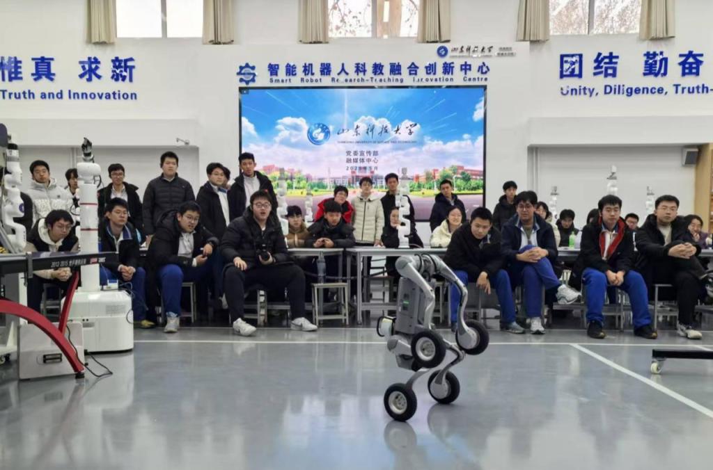 在智能機(jī)器人科教融合創(chuàng)新中心,自動(dòng)化專(zhuān)業(yè)張帥帥副教授圍繞智能機(jī)器人行業(yè)發(fā)展趨勢(shì),系統(tǒng)講解了該領(lǐng)域的研發(fā)歷程、關(guān)鍵技術(shù)突破及多元應(yīng)用場(chǎng)景,幫助學(xué)子們?nèi)嬲J(rèn)知人工智能產(chǎn)業(yè)發(fā)展現(xiàn)狀。在技術(shù)演示環(huán)節(jié),Unitree G1人形機(jī)器人、Unitree Go2-W四足機(jī)器人、TRON1多形態(tài)機(jī)器人,全方位展現(xiàn)了智能機(jī)器人技術(shù)的前沿發(fā)展成果。精彩的演示贏得現(xiàn)場(chǎng)學(xué)子的陣陣掌聲,有效激發(fā)了大家探索科技前沿、投身創(chuàng)新實(shí)踐的濃厚興趣。